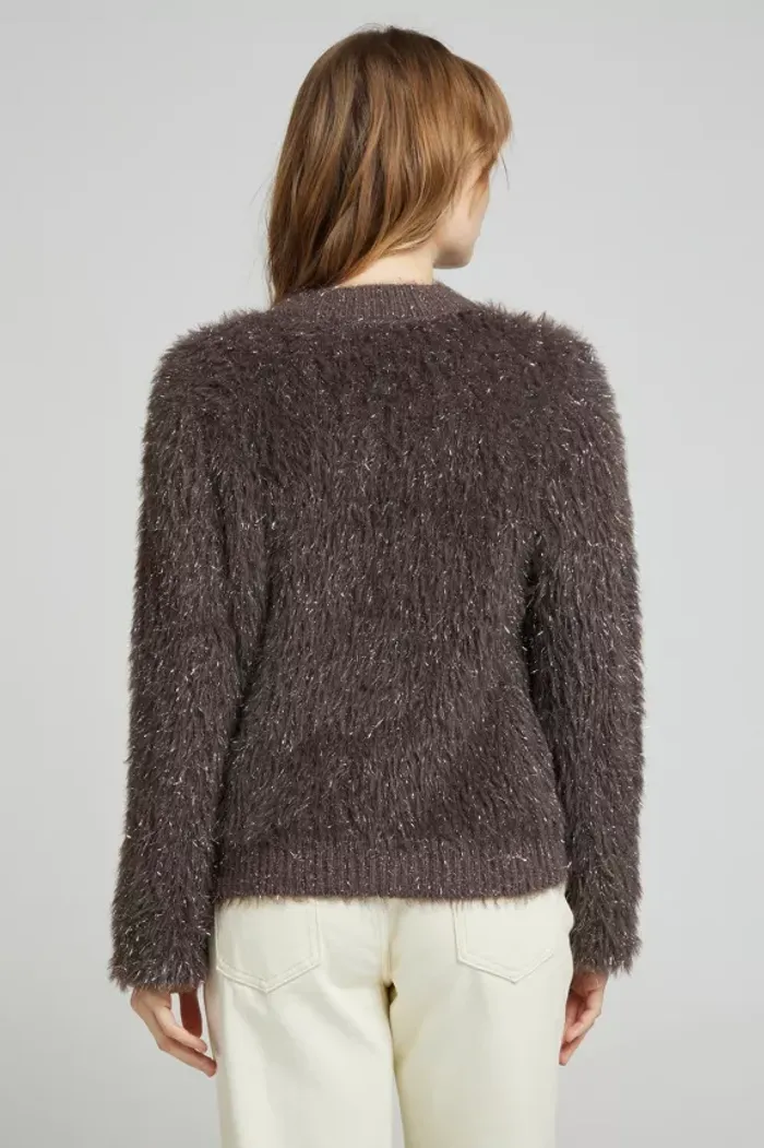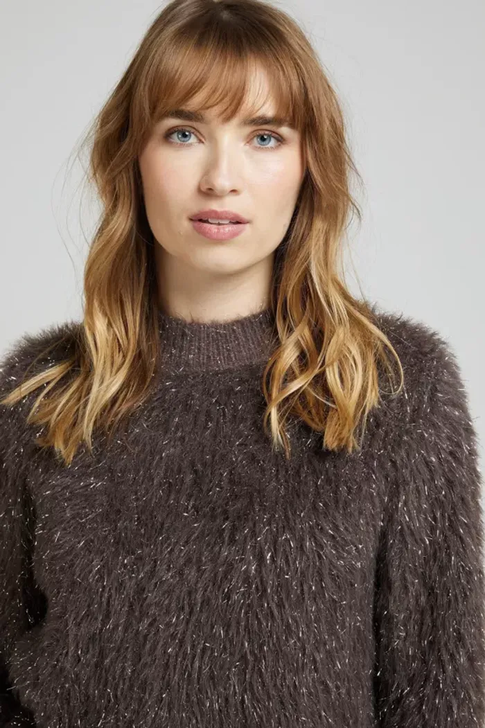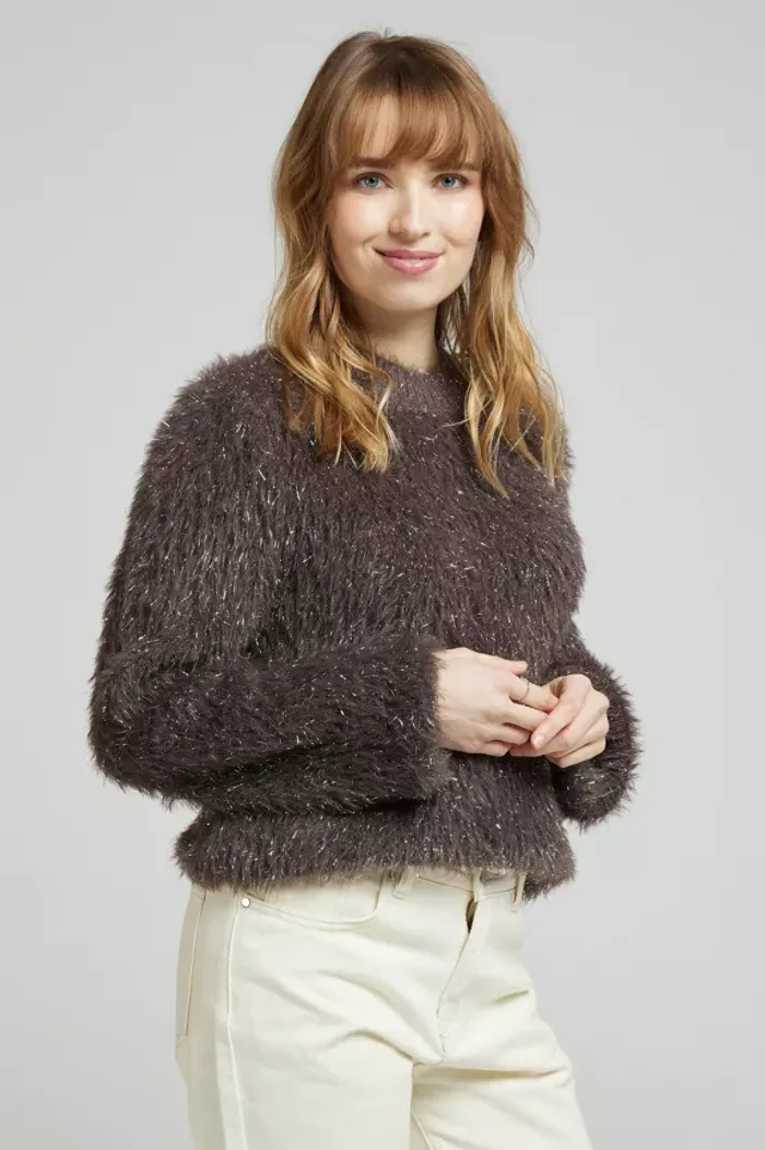Ajoutez une touche d’éclat et de confort à vos tenues avec ce pull en moumoutte texturée et fils lurex. Sa coupe légèrement ample et sa douceur incomparable en font un allié parfait pour la saison froide, idéal pour des looks cosy-chic ou pour briller lors de vos sorties.