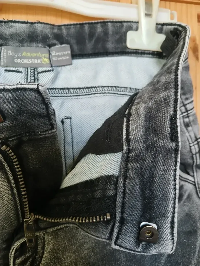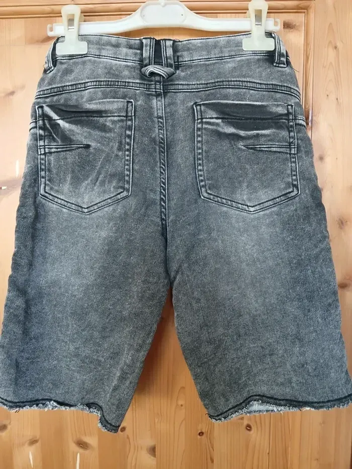 Short en jean léger noir délavé 4 poches et 2 fausses poches Crochet, fermeture et taille ajustable Longueur 46 cm