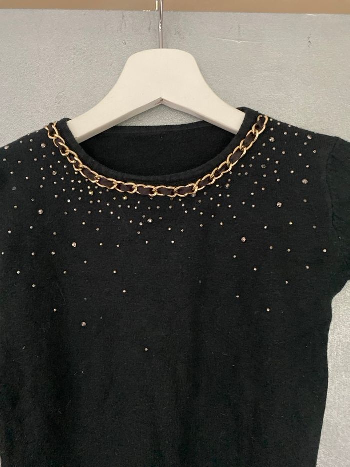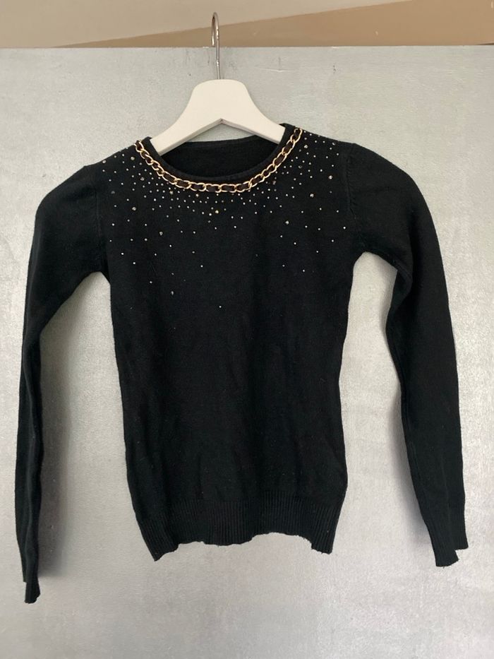 Pull en mailles noir avec brillants et maillons dorés autour du cou taille 6 ans