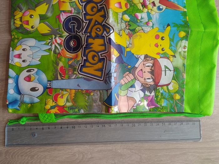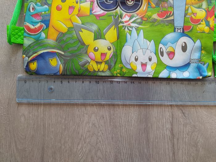 Couleur : vert avec plein de pokémon (kaiminus, hericendre, tiplouf, pikachu,...)