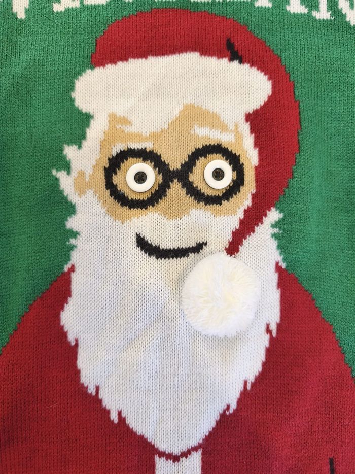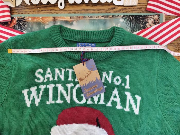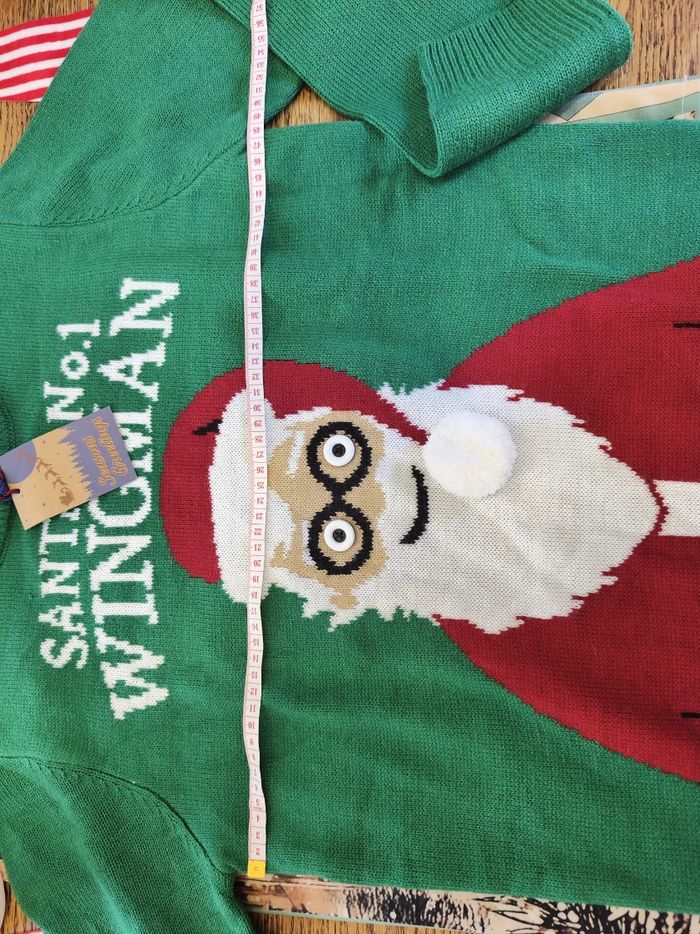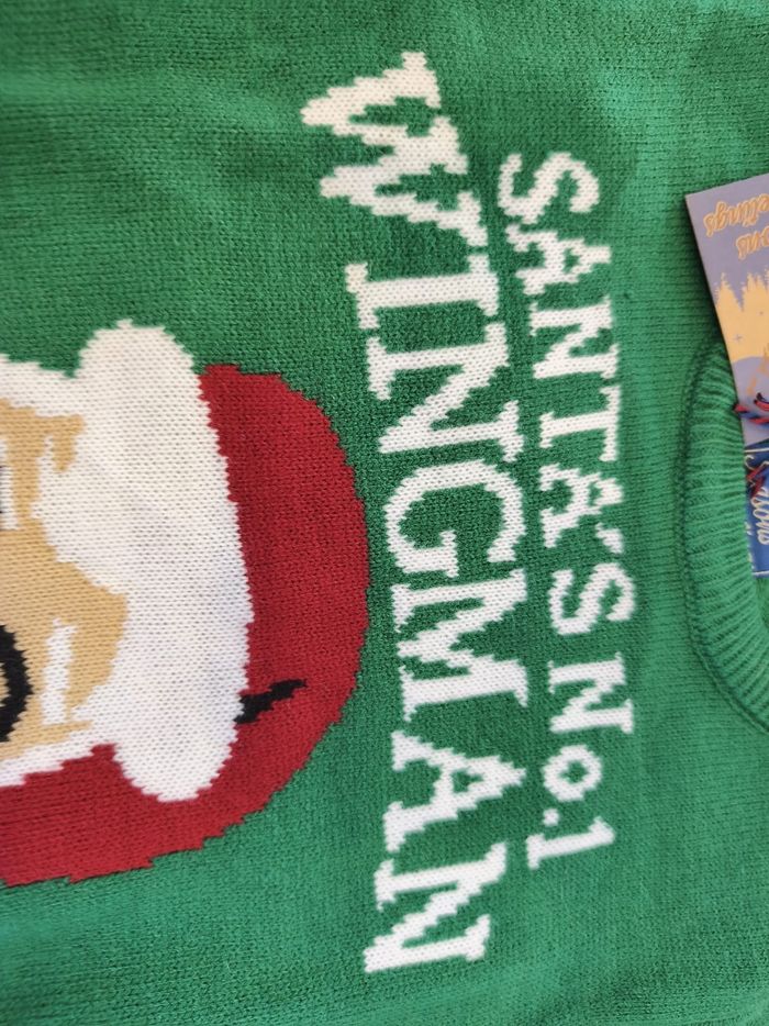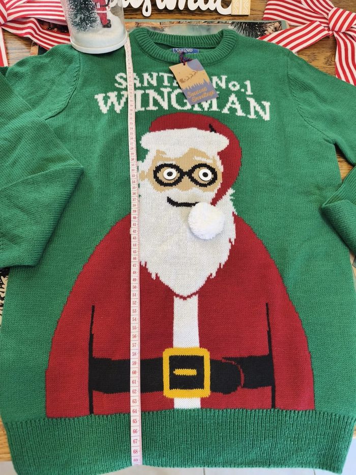 🎄 Pull de Noël vert – Pour devenir le bras droit officiel du Père Noël ! 🎅 Taille S – Neuf avec étiquette Tu veux briller (et faire rire) à ton prochain repas de famille ? Ce pull est fait pour toi. Dessus : un Père Noël tellement surpris que ses yeux veulent s’enfuir de ses lunettes 👀😂 Message officiel : “Santa’s N°1 Wingman” — oui, tu deviens carrément son copilote ! ✔ Neuf de chez neuf, étiquette toujours accrochée ✔ Taille S, parfait pour faire des câlins aux sapins ✔ Couleur : vert qui crie “C’EST NOËL !!” Adopté ce pull = garanti +10 en esprit festif. Allez, fais plaisir au Père Noël, deviens son wingman. 🎅✨