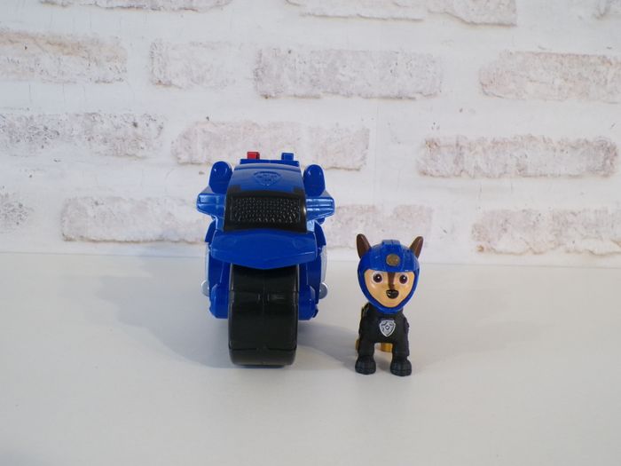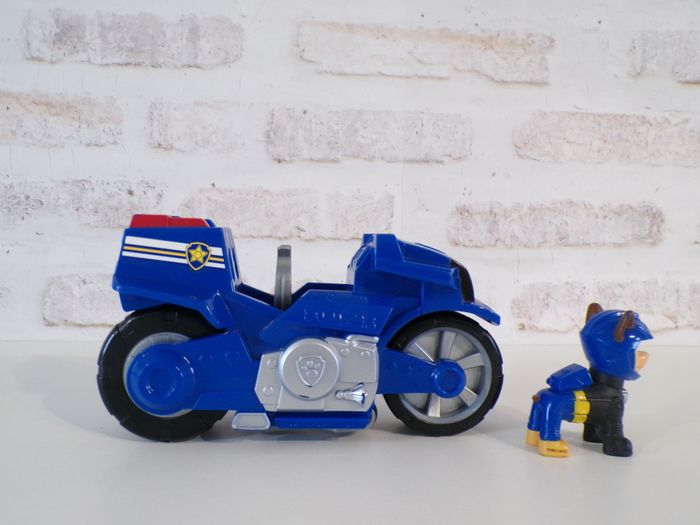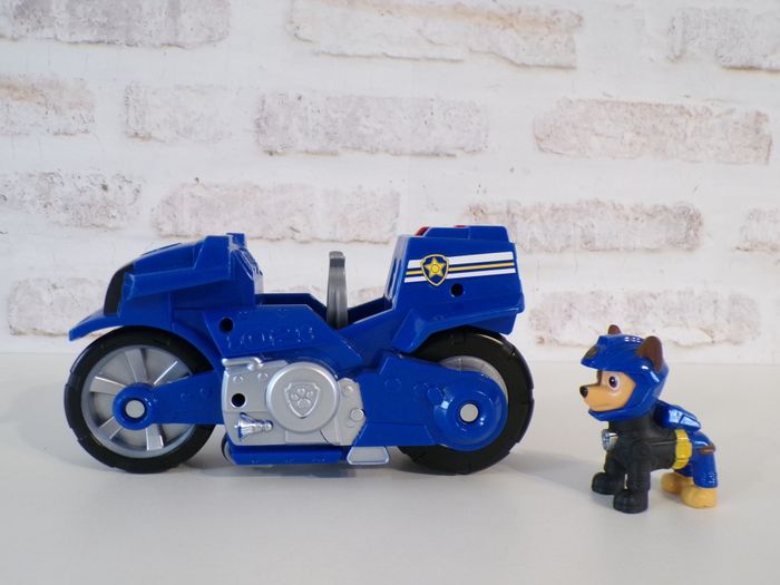 Moto Pups - Chase - Paw Patrol - Pat Patrouille, en bon état. La moto est à friction et fonctionne parfaitement pour finir sur la roue arrière.