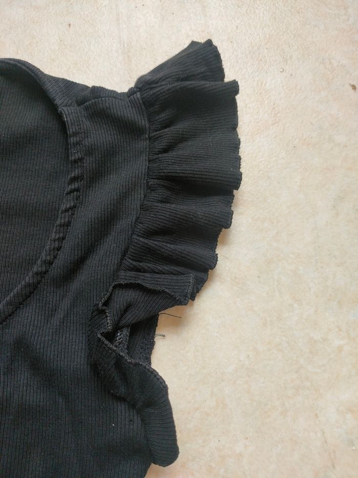 Coupe courte, matière agréable, et de jolies manches froufrou qui font toute la différence ✨