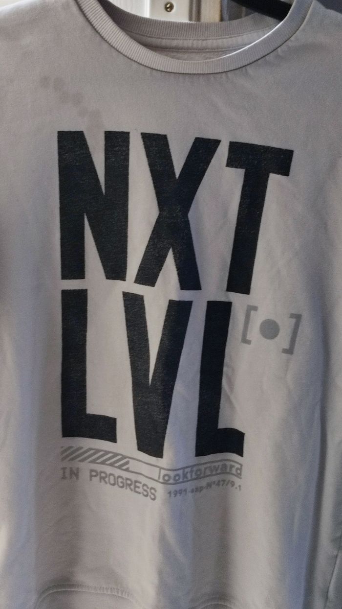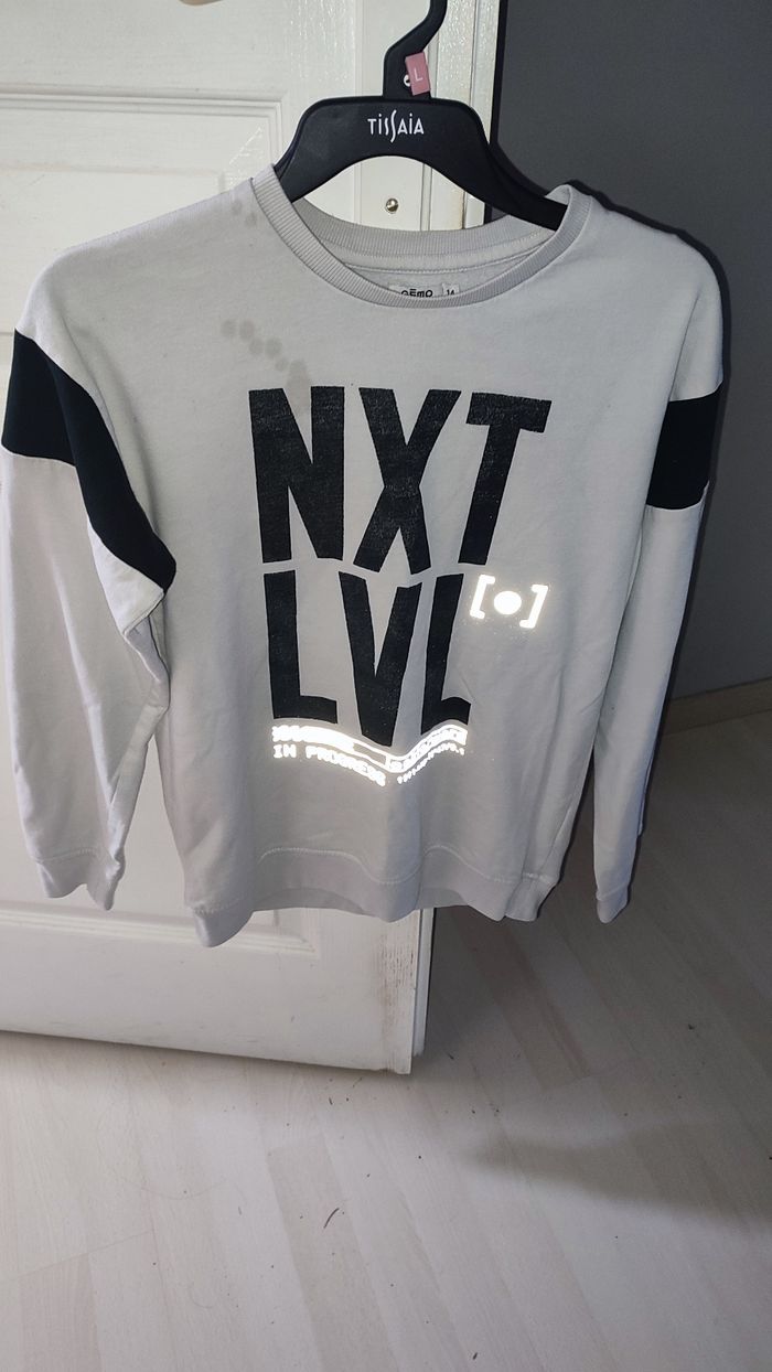 Beau sweat blanc écriture noire. Petite tâche en haut du sweat qui se voit peu.