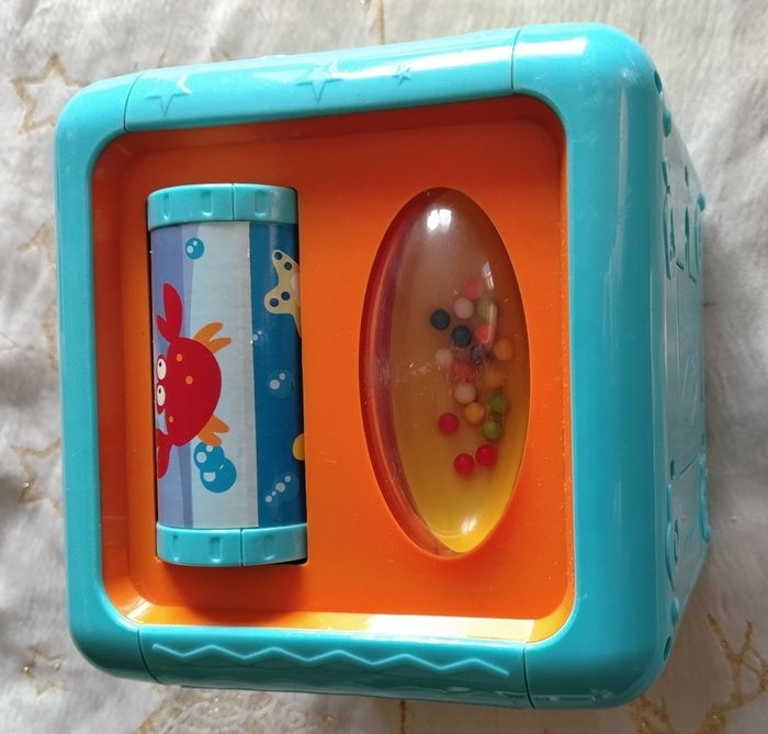 Je vends ce cube d'activités coloré et interactif pour les tout-petits.