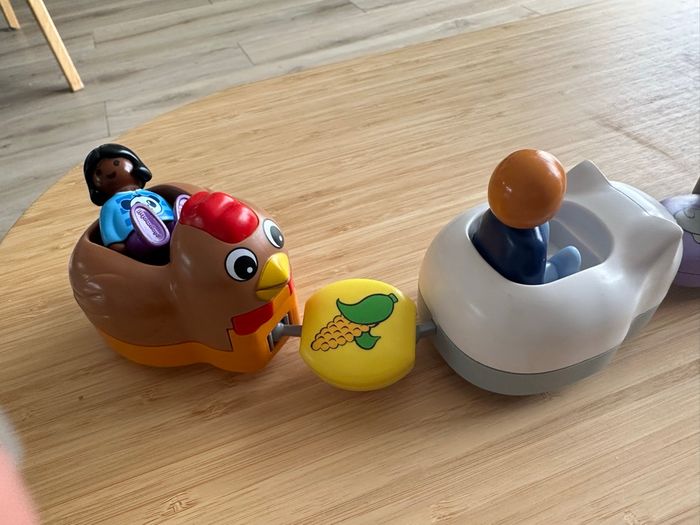 PLAYMOBIL 1.2.3 pour découvrir les apprentissages polyvalents. Contient trois personnages et trois wagons en forme d'animaux. Little expert : Grâce à ce jouet, l’enfant expérimente des apprentissages polyvalents comme comprendre les connexions et raconter les premières histoires. Contient 1 personnage, 2 enfants, 3 wagons en forme d'éléphant, de chat et de poule-