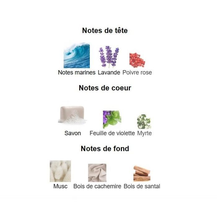 Note de tête : Lavande, poivre rose, accords embruns marins