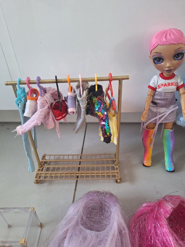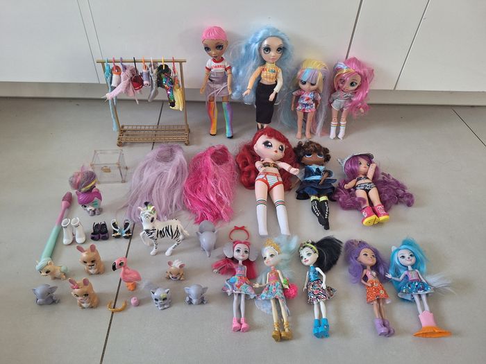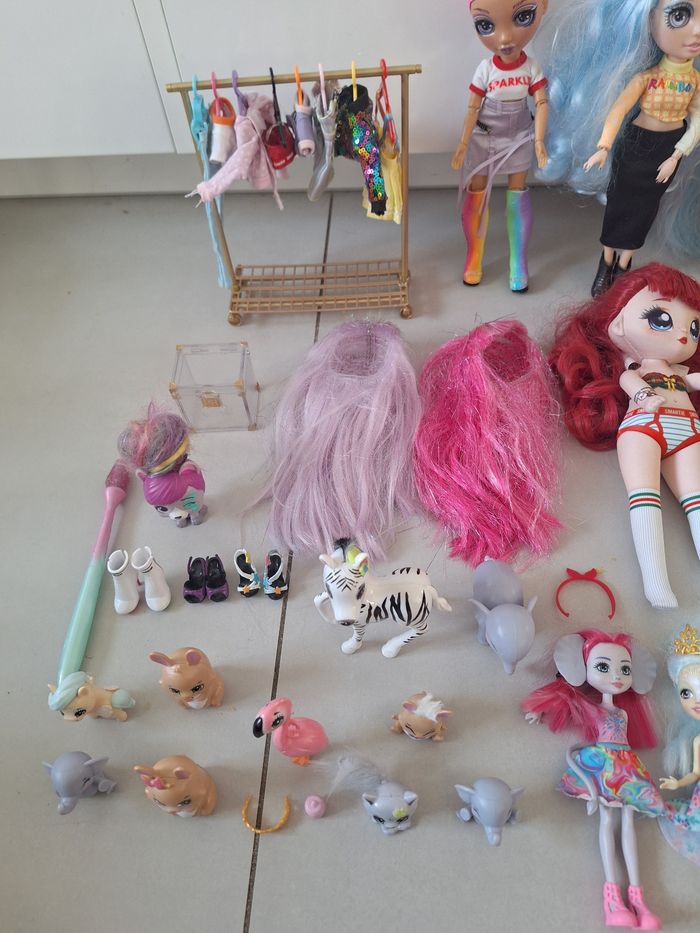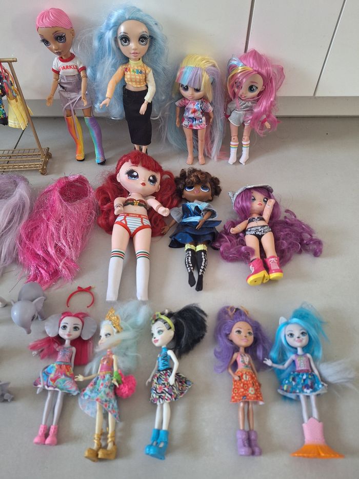 Poupées rainbow high avec dressing, perruques, enchantimals, Poupées na na, animaux...