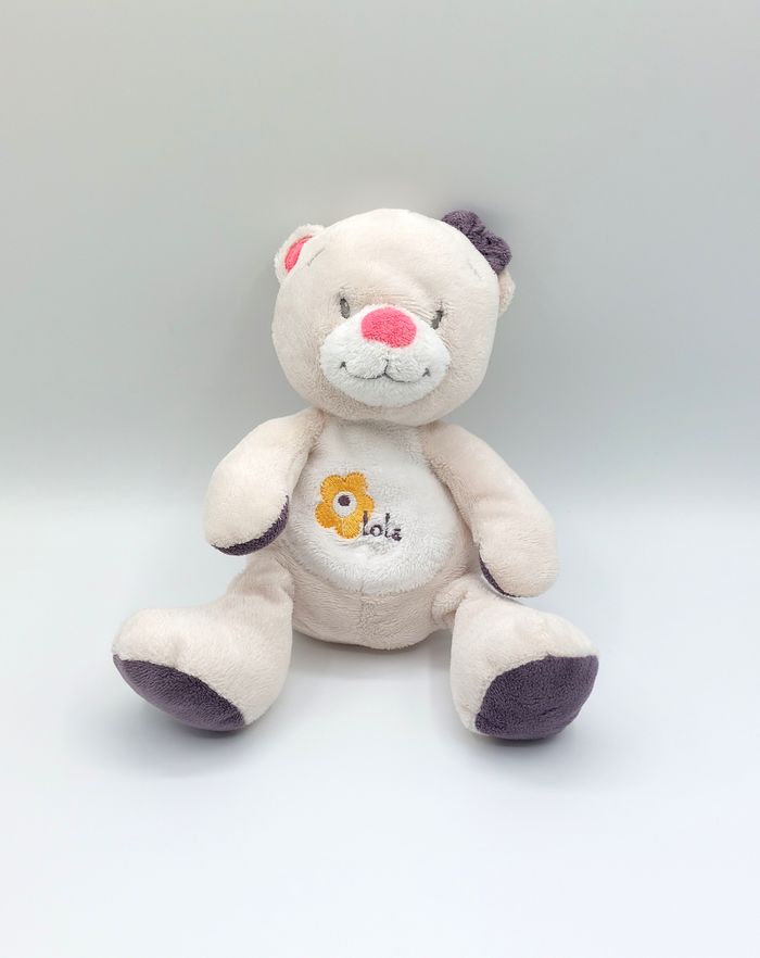 Peluche doudou ours Lola écru crème rose mauve fleur jaune 22 cm Arthur et lola - photo numéro 1