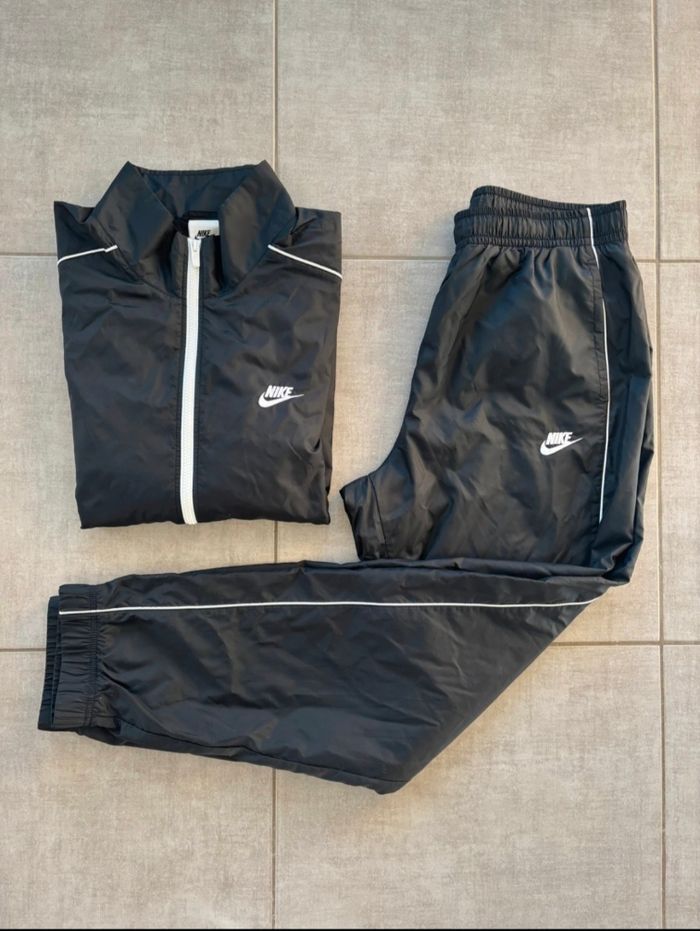 Voici les informations de cet ensemble: Taille: L Pour le pantalon: 38cm largueur 106cm longueur Pour la veste : 55cm aisselle a aisselle 68cm longueur Marque: Nike Etat: Très bon état Couleur: Noir Prix: 45€ Here are the details for this set: Size: L Pants: 38cm width, 106cm length Jacket: 55cm armpit to armpit, 68cm length Brand: Nike Condition: Very good Color: Black Price: €45