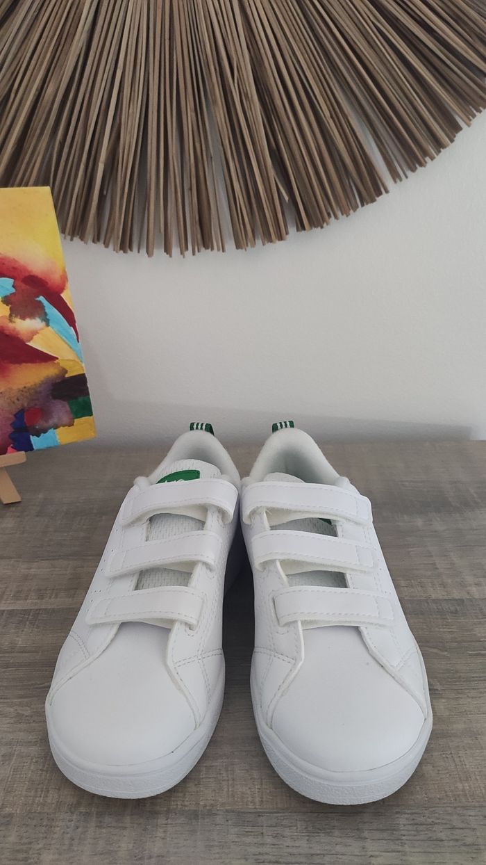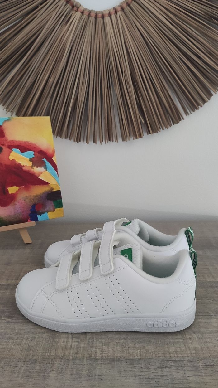 Bonjour, Je vends cette paire de sneakers 3 Scratchs adidas blanche et verte neuve jamais portée dans la boîte d'origine.