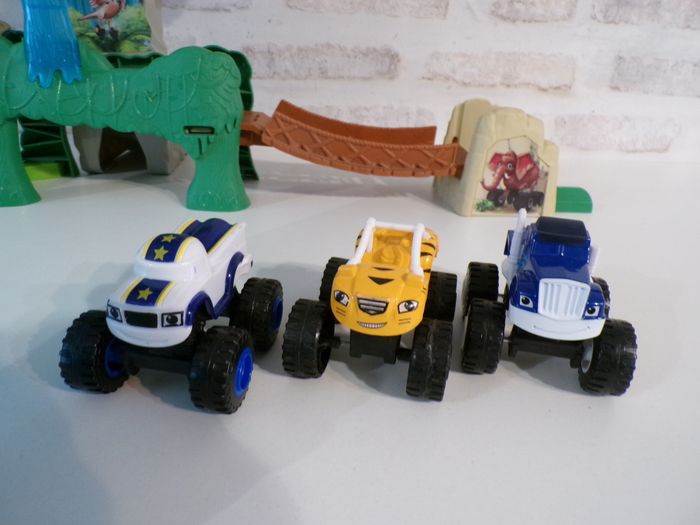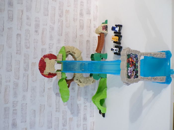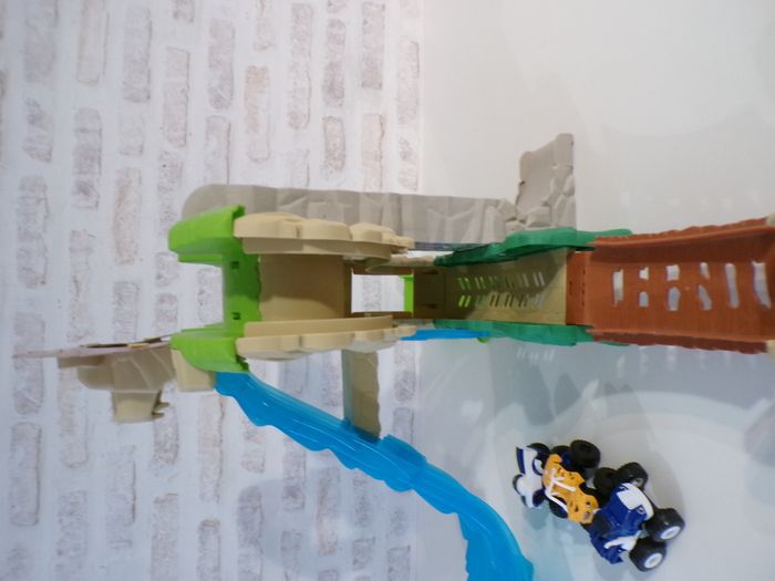 Circuit Cascade Jungle - Blaze - Les monstres Machines, en très bon état, presque complet (manque les 2 petites portes de l'arcade en bout de circuit bleu), les autocollants et la corolle en carton du lion ont un peu vécus. Vendu avec les véhicules Darrington, Crusher et Stripe en bon et très bon état. Mon dressing est trié par catégories, tailles et saisons pour les vêtements. Cliquez sur mes liens # qui sont dans l'annonce. #sonia222404 #jouetenfantsonia222404 #blazemonstermachinesonia222404