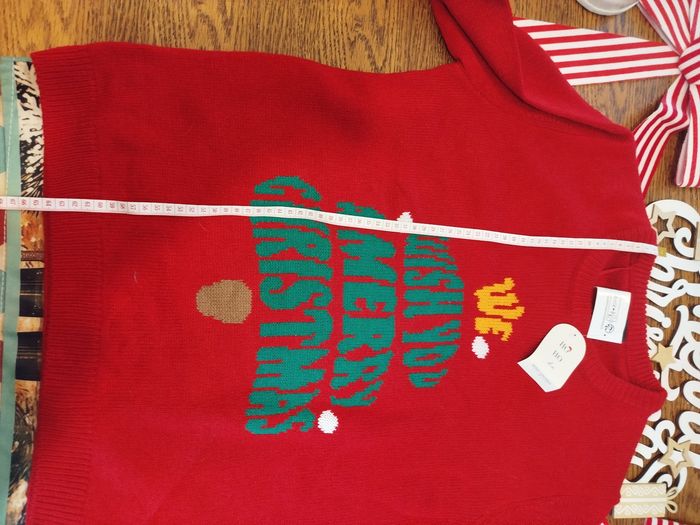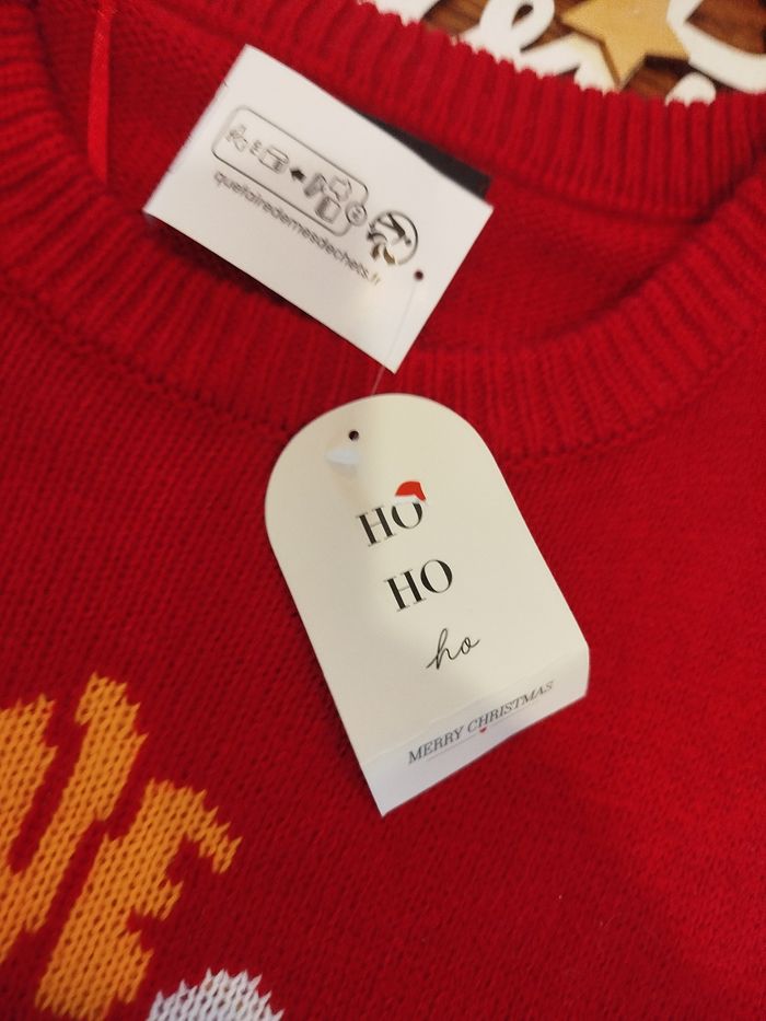 🎅 Pull de Noël rouge – Taille L – Neuf avec étiquette ! 🎄 Voici le pull parfait pour entrer dans la période de Noël comme un vrai sapin superstar. Il crie littéralement “WE WISH YOU A MERRY CHRISTMAS”, donc si quelqu’un n’a pas l’esprit festif… c’est pas faute d’avoir essayé. 🌲 Design : un sapin en mode lettering trop fun ✨ État : neuf, jamais porté, il a juste patienté sagement sous les décorations 👕 Taille : L – idéal pour briller sans clignoter Parfait pour : – réussir son entrée à la soirée de Noël – gagner le concours du pull le plus joyeux – faire des photos qui sentent la cannelle et la joie Bref, tu poses ça sur tes épaules et bim : ambiance festive garantie. 😄