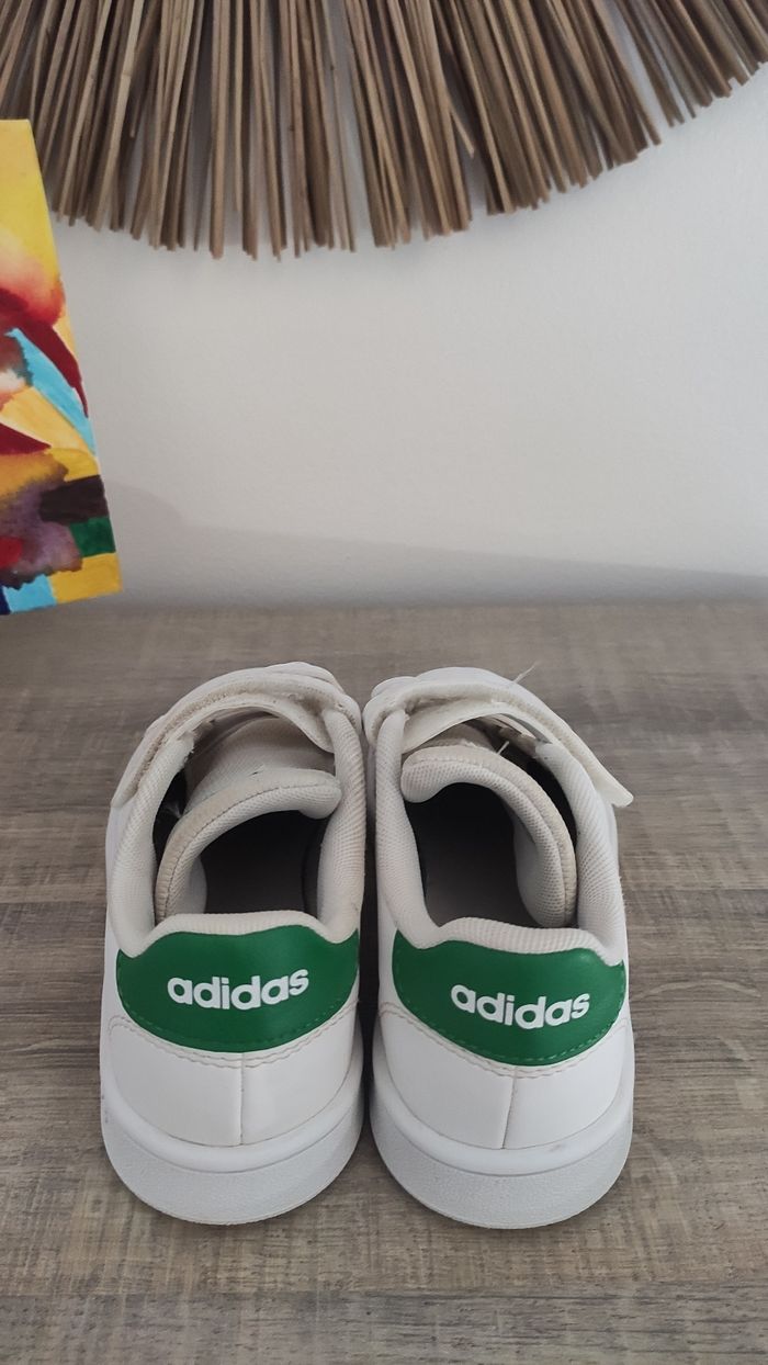 Bonjour, Je vends cette paire de sneakers 3 Scratchs adidas blanche portée une dizaine de fois mais propre. Entièrement nettoyée.