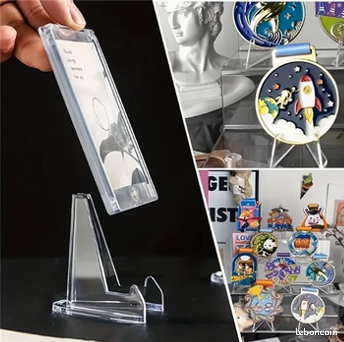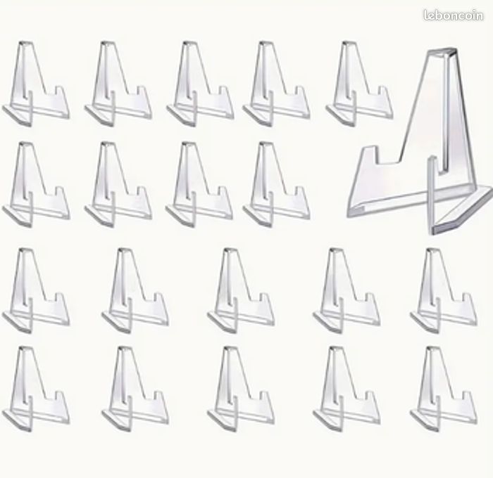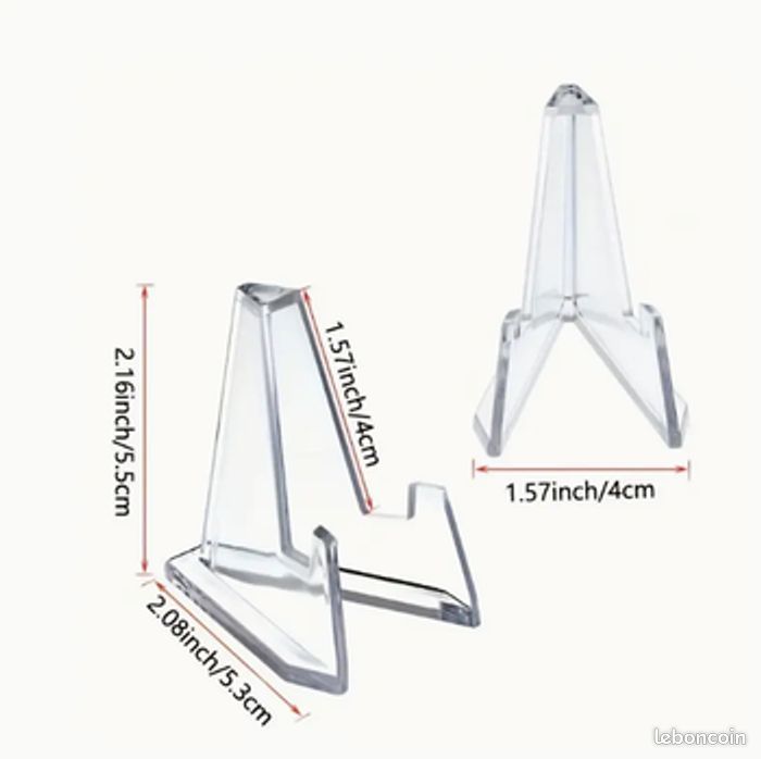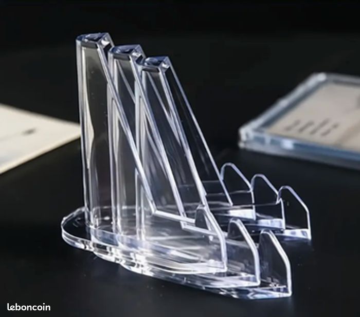 Un lot de supports d'affichage de cartes en acrylique, des supports en acrylique transparents idéaux pour mettre en valeur des collections de pièces, médailles, cartes pokemon, one piece, arcana, yu-gi-oh ou comme supports de téléphone.