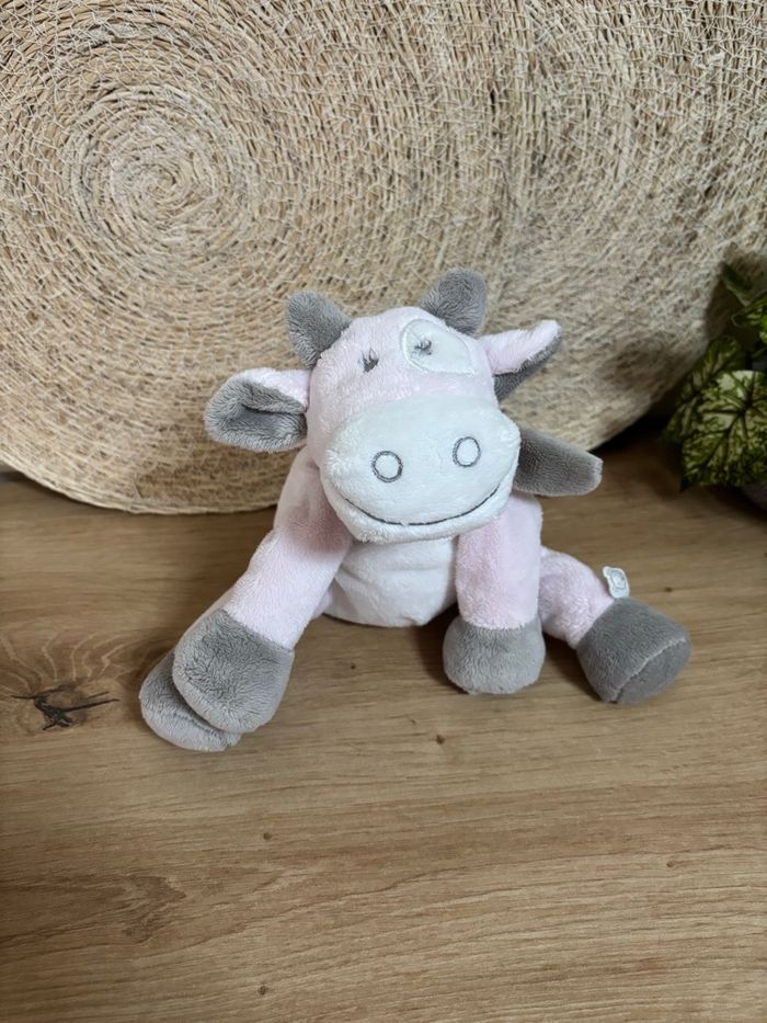 Très bon état 20 cm Envoi rapide #doudouvachelolarosegrisnoukies #doudouvachegrisblancrosenoukies