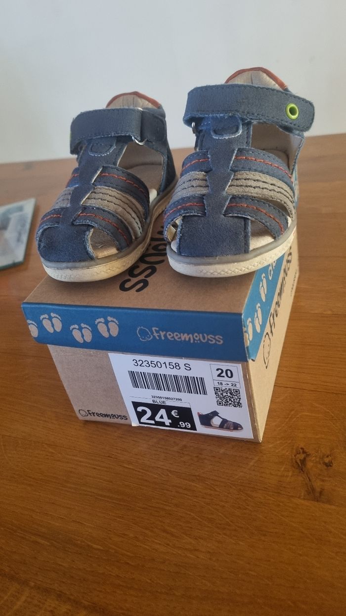 Nous pieds garçon pointure 20, de la marque Freemouss. Boite d'origine, fermeture à scratch, peu portés. Semelle intérieure cuir.