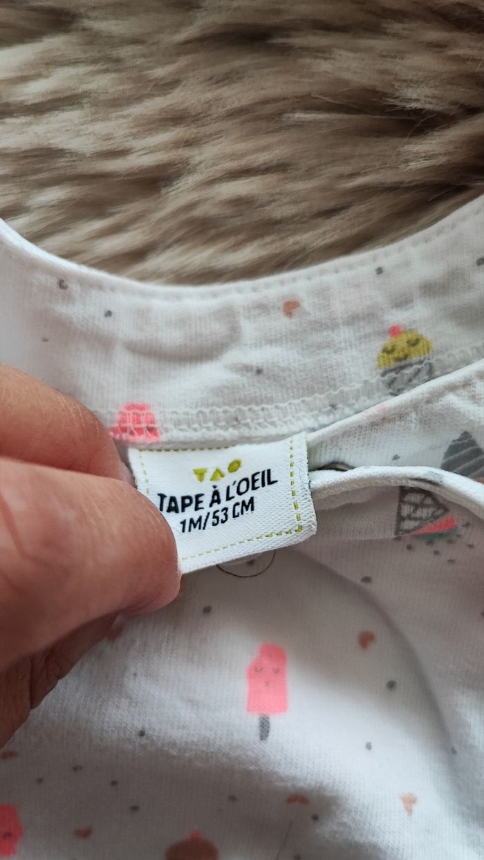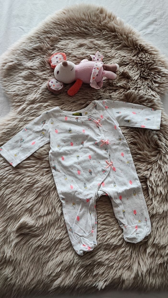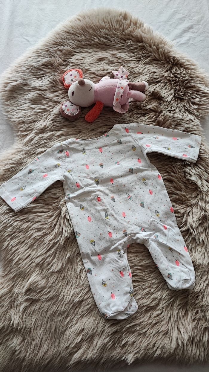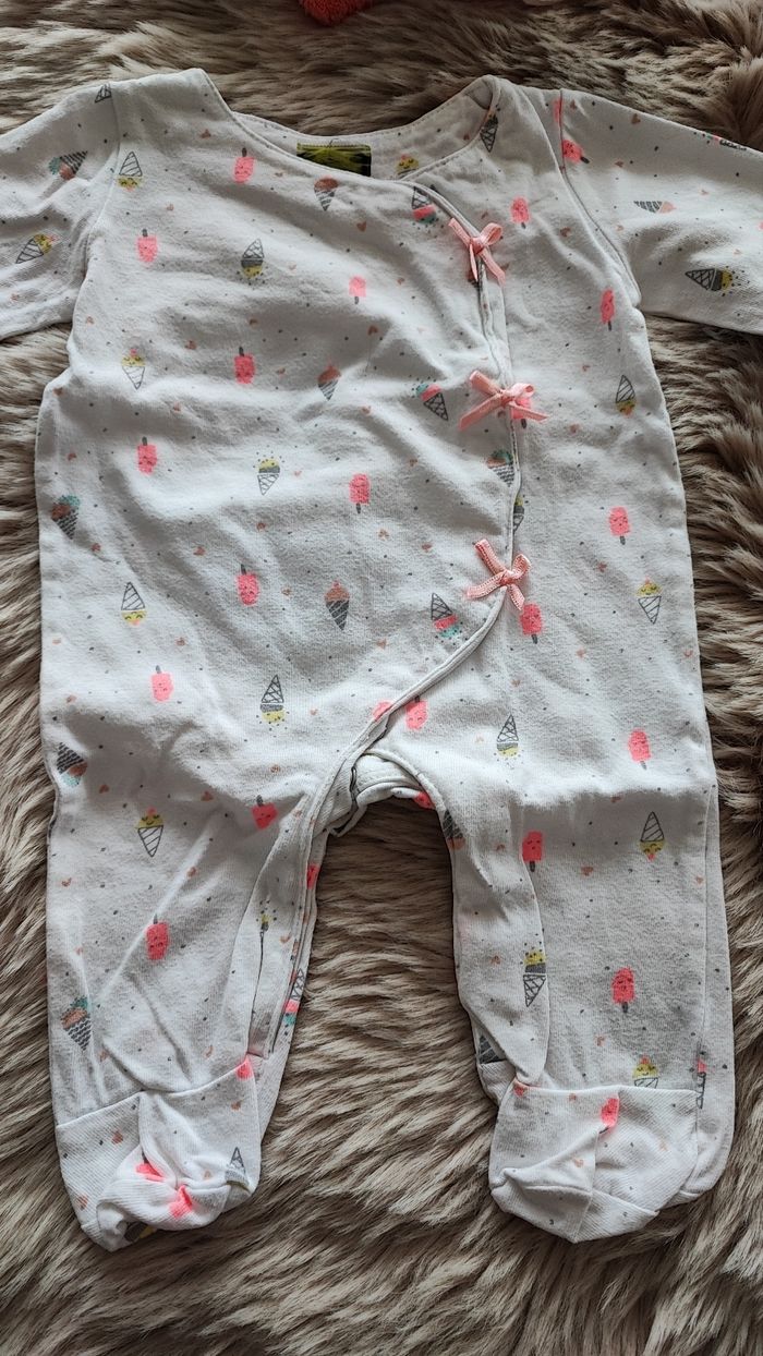 Pyjama fin blanc glaces avec ouverture sur le devant. De la marque tape à l'oeil En taille 1 mois En très bon état maison non fumeur #laetitia33700filleunmois