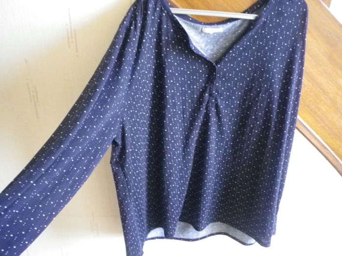 Largeur aisselle à aisselle 74 cm environ, hauteur 76 cm environ Très légère, fluide, un peu transparente Marque MODAVISTA