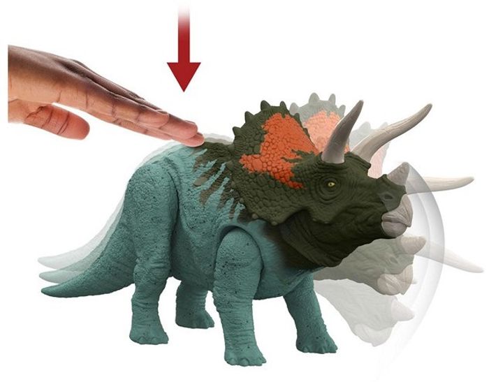 Jurassic World Dinosaure articulé Tricératops avec son code ADN scannable HDX40 Pour imaginer des scènes de combat réalistes, appuyez simplement au niveau des hanches du dinosaure pour activer un rugissement et une attaque au coup de tête Des dinosaures qui prennent vie sous vos yeux ! Trouvez le code ADN caché et scannez-le avec l’appareil mobile de votre choix pour débloquer les options de réalité augmentée dans l’application gratuite Jurassic World Facts (Android et iOS) Smartphone/tablette non inclus. Produit neuf dans son emballage d'origine non ouvert. La réalité augmentée permet aux enfants d’étudier visuellement le dinosaure dans le laboratoire à travers différents modes, comme la vision thermique et la vision à rayon X ! Ensuite, ils peuvent faire apparaître des dinosaures dans la pièce où ils se trouvent grâce à la réalité augmentée COUREZ ! NE CONVIENT PAS AUX ENFANTS DE MOINS DE 4 ANS !PETITES PIECES RISQUE D'ETOUFFEMENT !