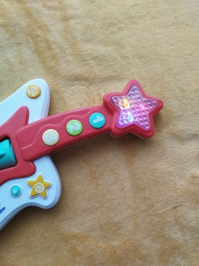 Guitare musicale pour enfant. - Âge recommandé : De 4 à 6 ans - Fonctionnalités : Sonore, avec boutons et touches pour jouer de la musique. - État : Très bon état. Fonctionne parfaitement. Piles neuves (changé pour la vente)