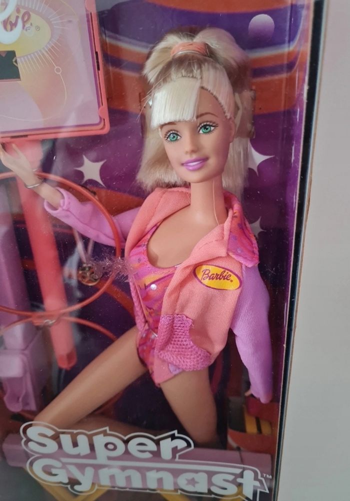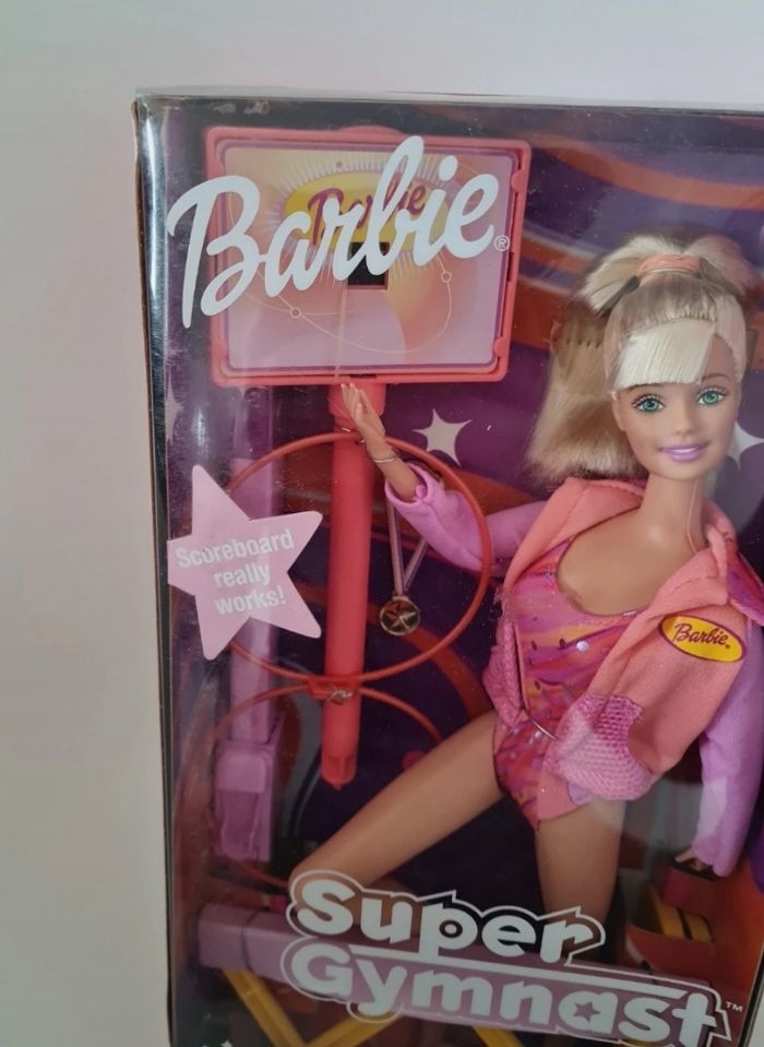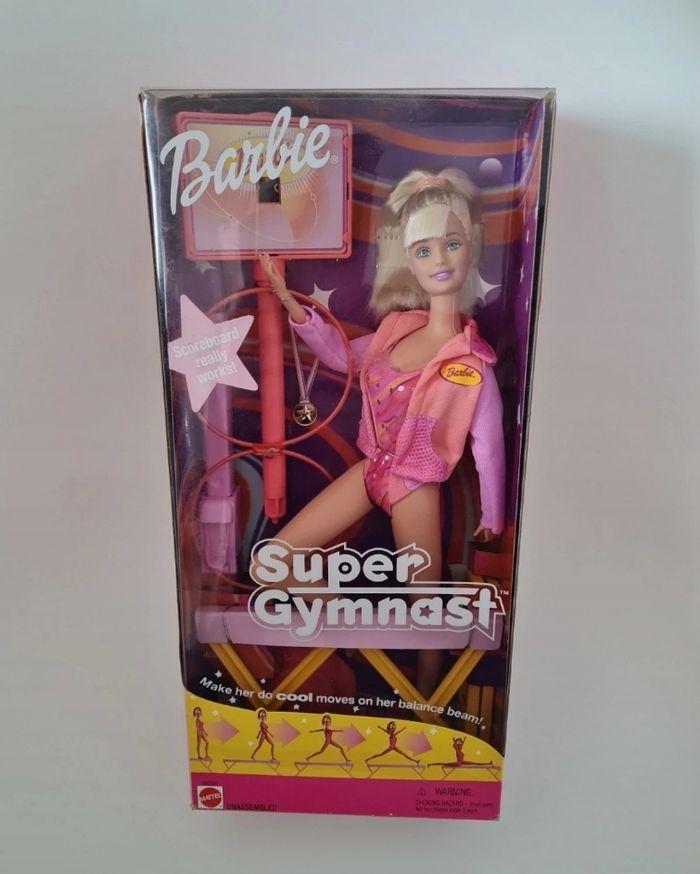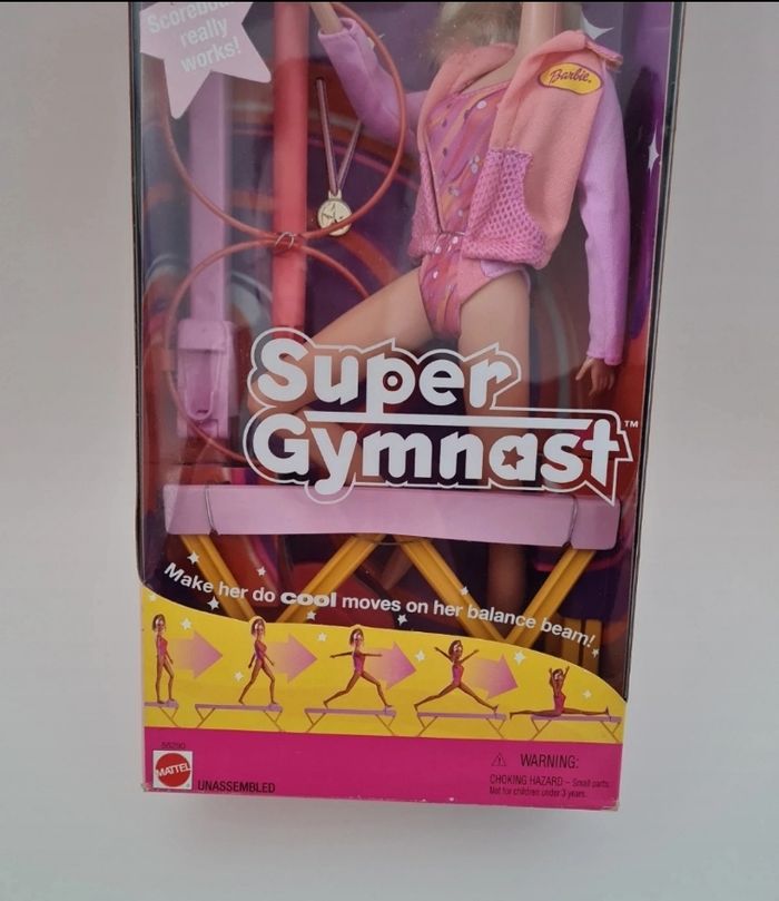 Jamais ouverte Mattel 2001 Barbie fait de la gymnastique avec poutre cerceaux et tableau d'affichage *eb0835*t3