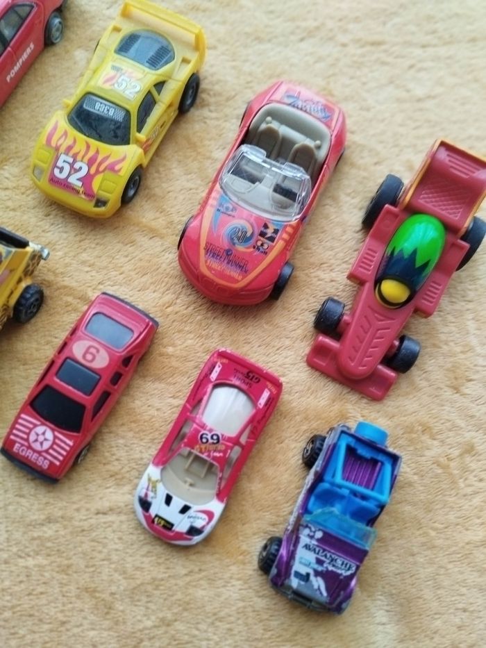 lot de 10 voitures - Âge recommandé : De 4 à 6 ans - Composition du lot : 10 voitures miniatures de différentes couleurs et designs en bon état.