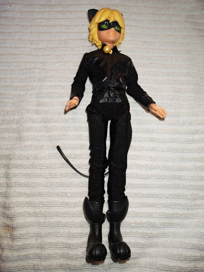 Poupées entièrement articulées miraculous 27cm et chat noir 30cm, avec le petit chat noir, en très bon état, maque une chaussure à miraculous #jouetsbertram