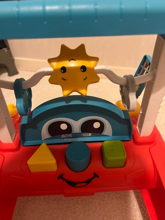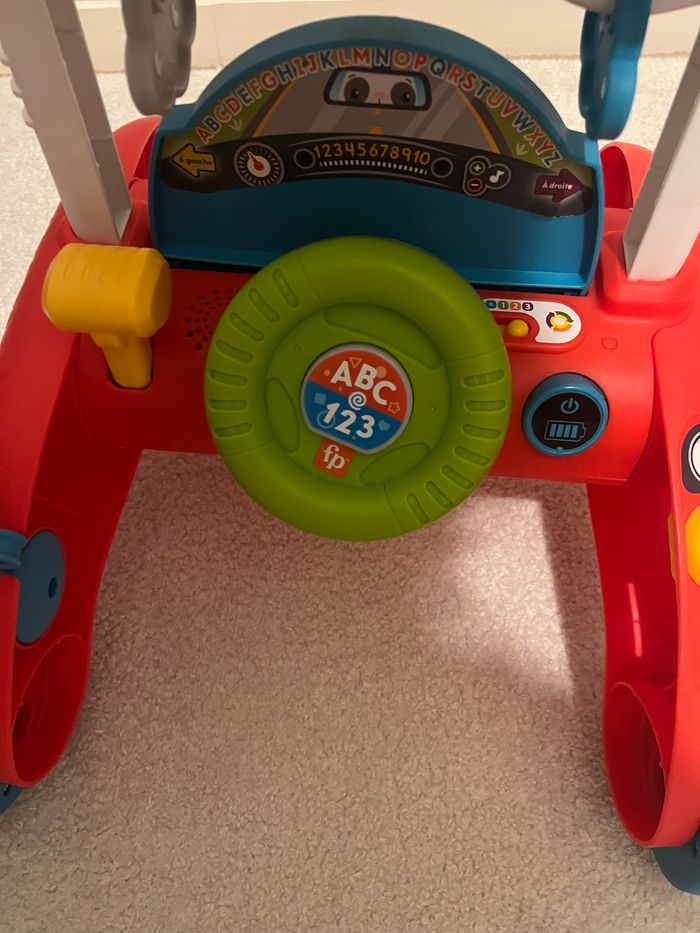 Ce trotteur au design inspiré des voitures permet à bébé de se tenir debout et de pousser le jouet vers l’avant ou l’arrière grâce aux roues. Les deux côtés du trotteur possèdent de nombreuses activités d’éveil, y compris un tableau de bord et un volant interactifs.