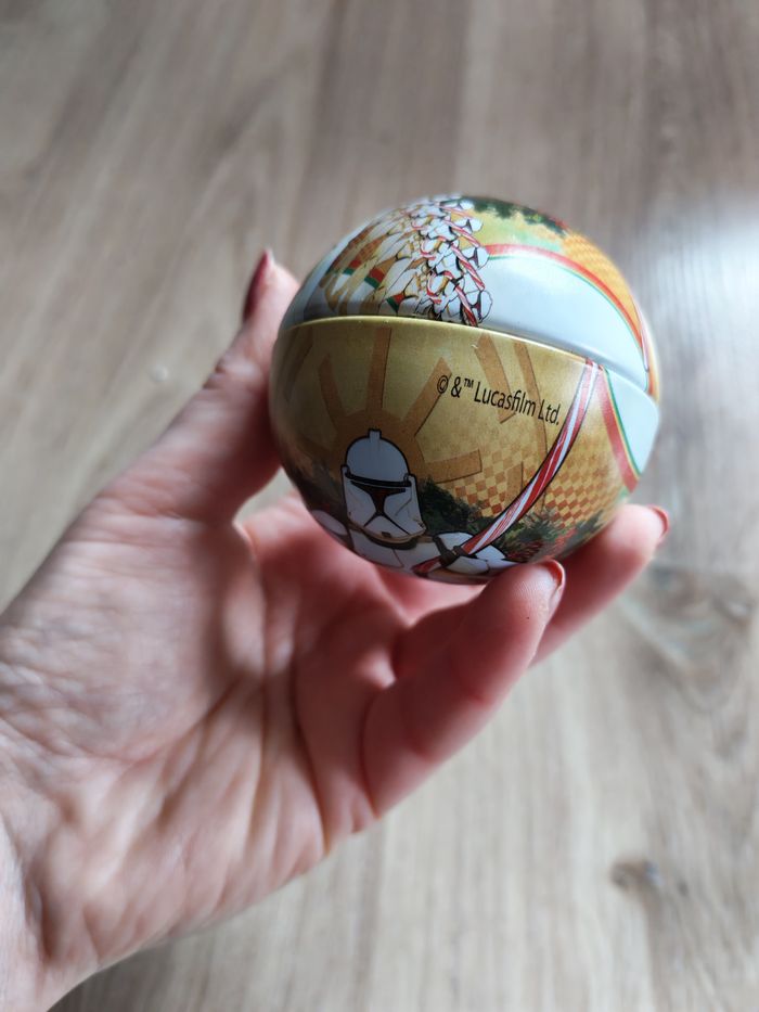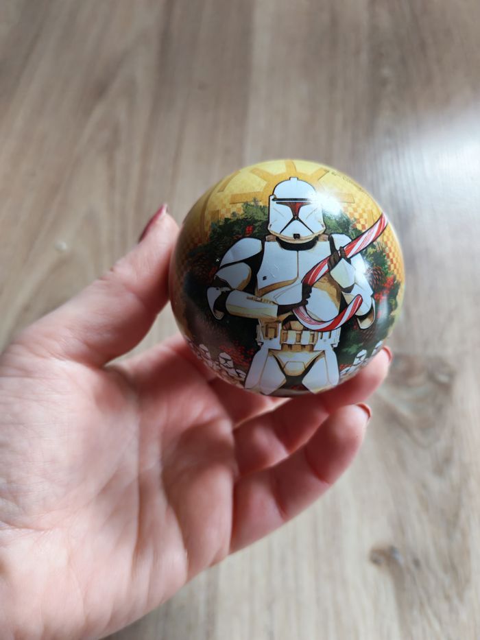 Boule de Noel en métal soldat Star Wars avec le sucre de canne, VIDE, en très bon état, mais ne s'ouvre pas. Taille 6,5 cm, poids 28g.