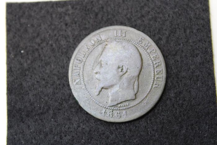 Pièce de 10 centimes france 1861 Datant de 1861, cette pièce est en bronze, elle a un diamètre de 30 mm et la tranche lisse. Napoléon III tête laurée La pièce est usée Réponds avec plaisir aux demandes d'informations complémentaires Réponse rapide envoi soigné dans les meilleurs délais