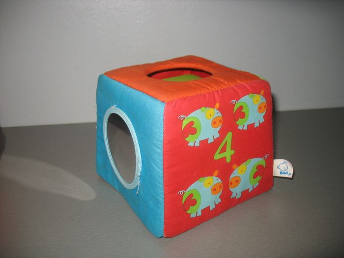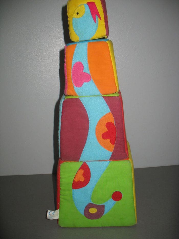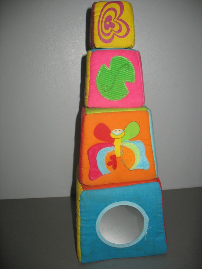 Lot de 4 cubes en tissu - Activités sur toutes les faces - Se rangent les uns dans les autres.