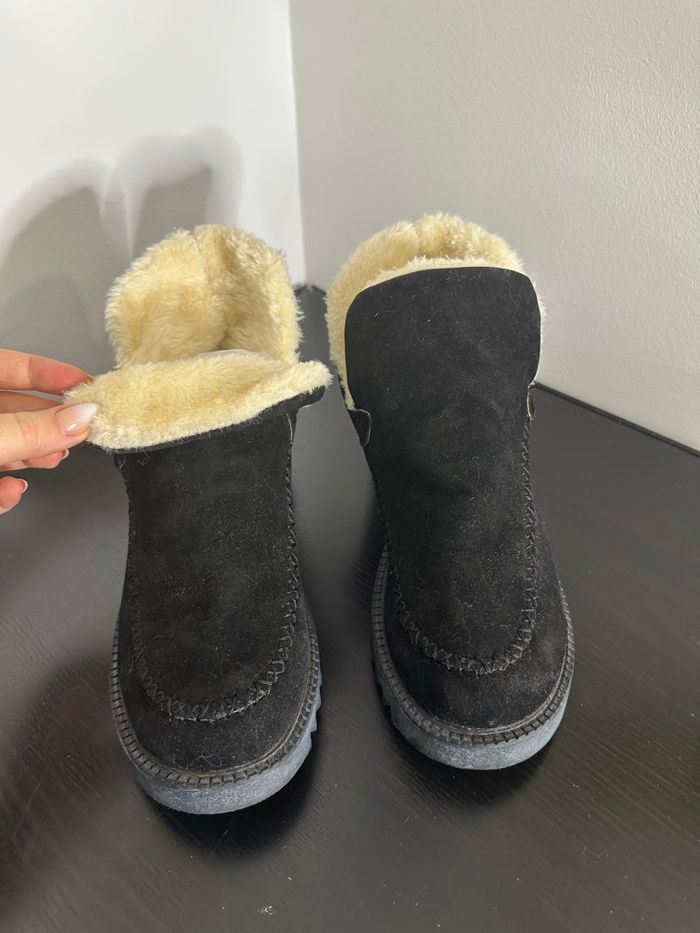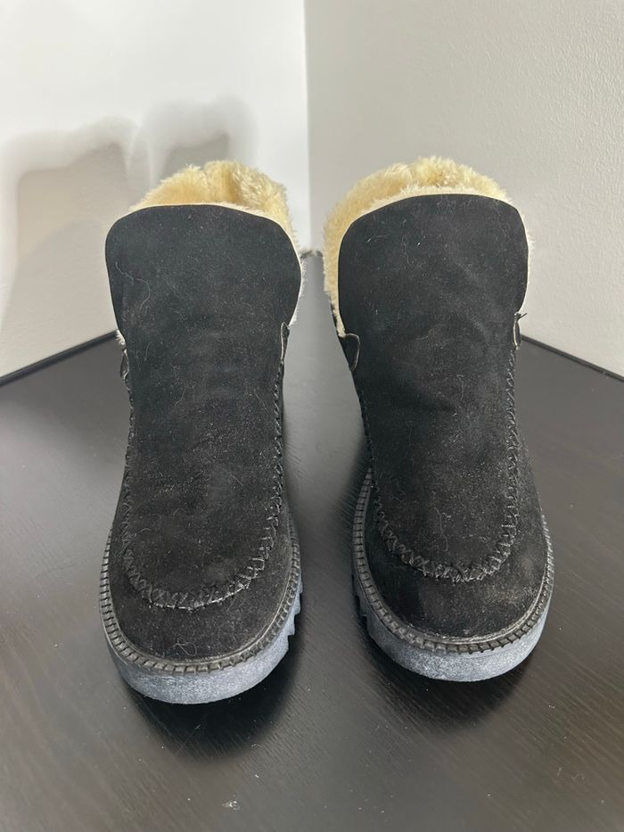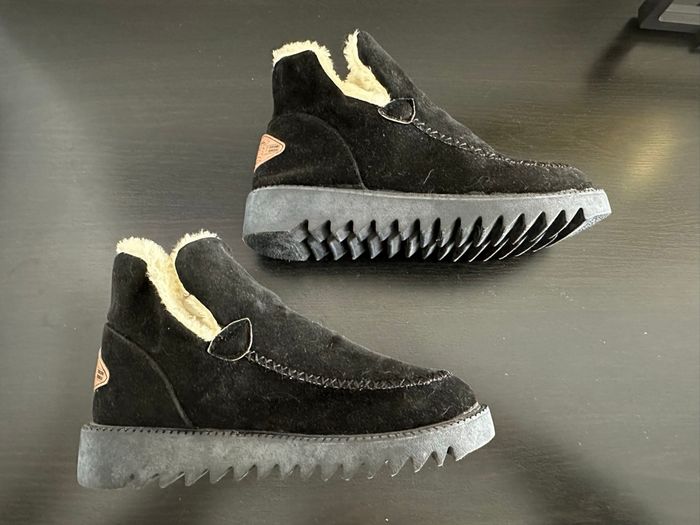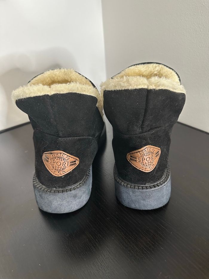 Bottines - Excellent état - Pointure 37/38 La semelle indique une taille 40 mais elles sont très petites. - Semelles plateformes crantées - Noir et beige crème - Extérieur en velours noir - Intérieur en polaire fausse fourrure beige crème ultra épaisse - Idéales pour les températures froides et la neige - Vintage, années 80’