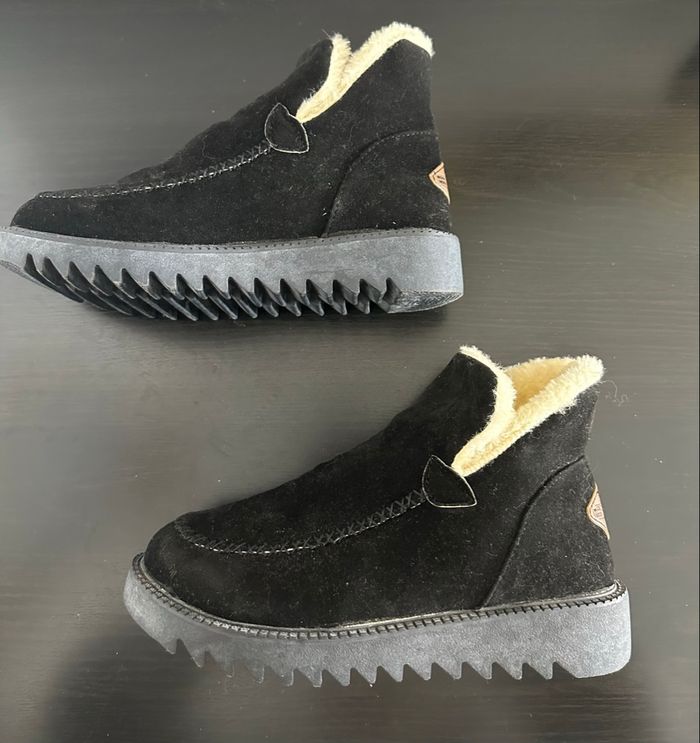 Bottines plateformes fourrées noir et beige polaire fausse fourrure velours Vintage T37 - photo numéro 9
