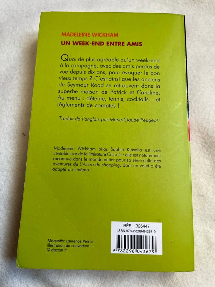 vends ce livre de poche de madeleine wickham alias Sophie Kinsella titre un week-end entre amis édition piment code 9782298043679 1,5 euros Mes autres annonces de livres #lma42livre
