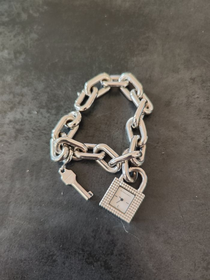 Très belle montre Burberry en argent , vous pouvez la régler selon votre poignet, montre argent faite en très peu d exemplaires, la pile est a changer