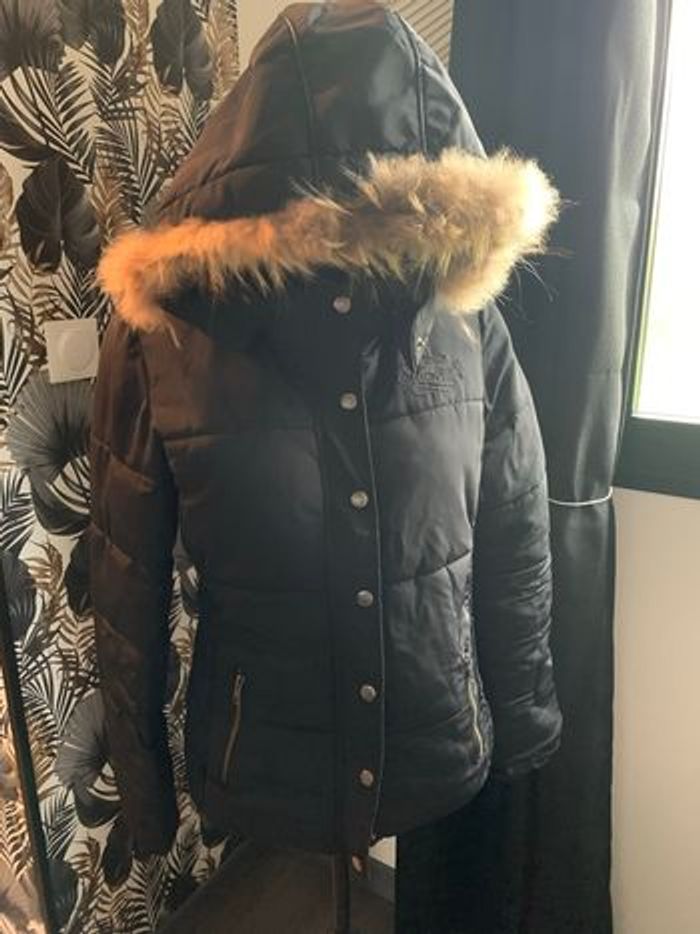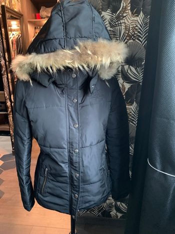 Doudoune noir kaporal taille s . Signes d’usure visible sur la photo ( mais aucun trou et les fermetures fonctionnent parfaitement )