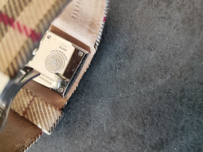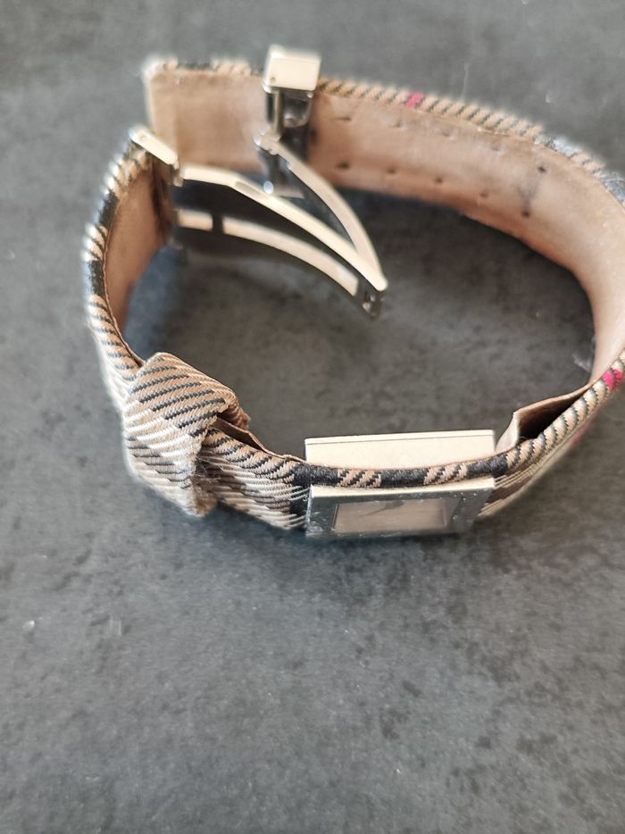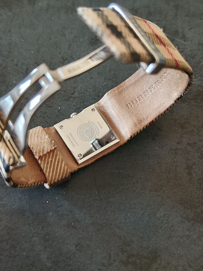 Montre Burberry , souvent portée , donc il y des traces d usures , bien regarder les photos, , mais je suis su elle peut faire le bonheur d une autre personne, marque intemporelle , il faudra changer la pile, de règle selon le poignet