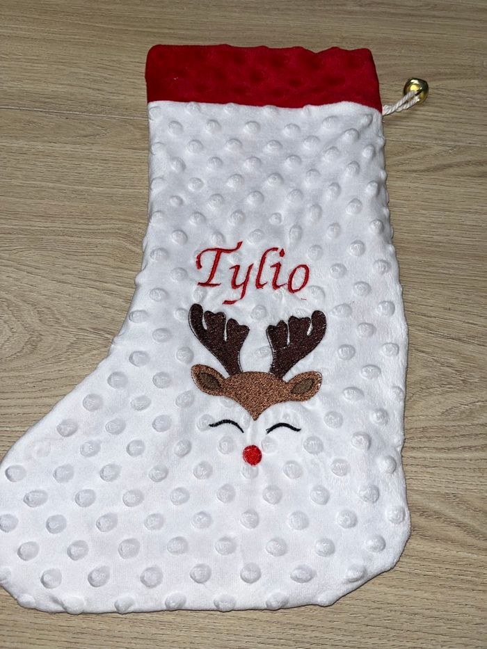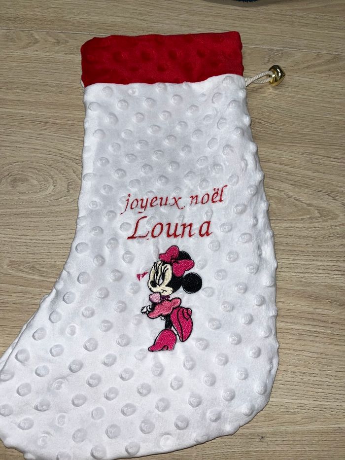 Chaussette de Noel personnalisée Tissu tout doux fait main Dessin et prénom brodé sur demande