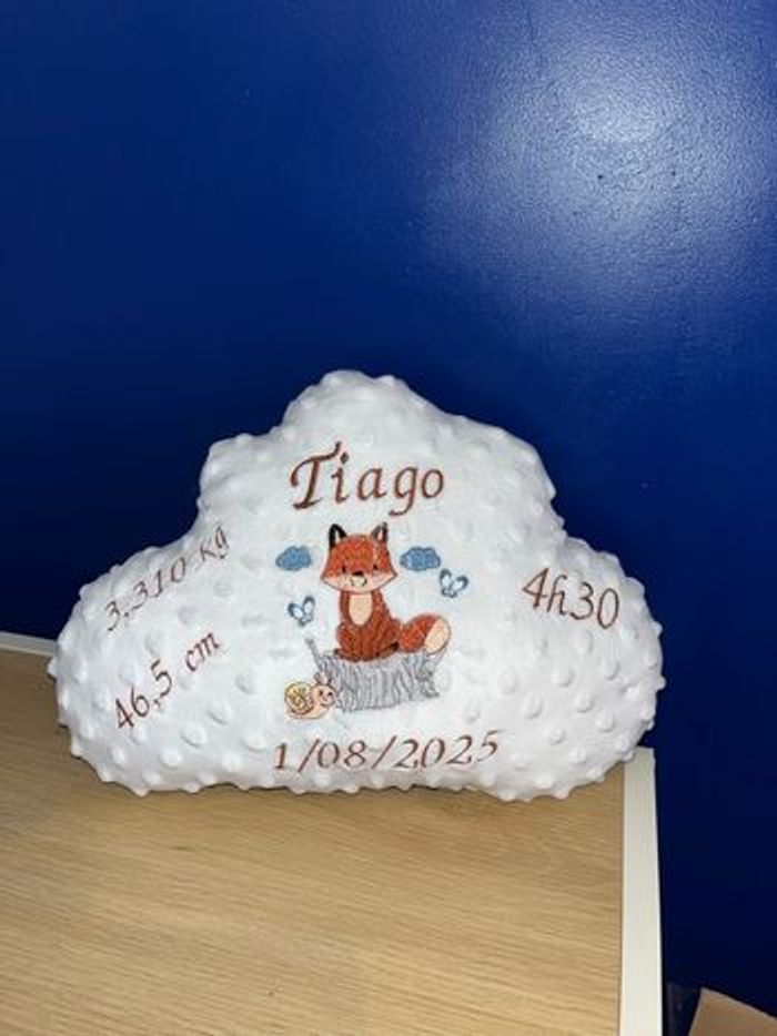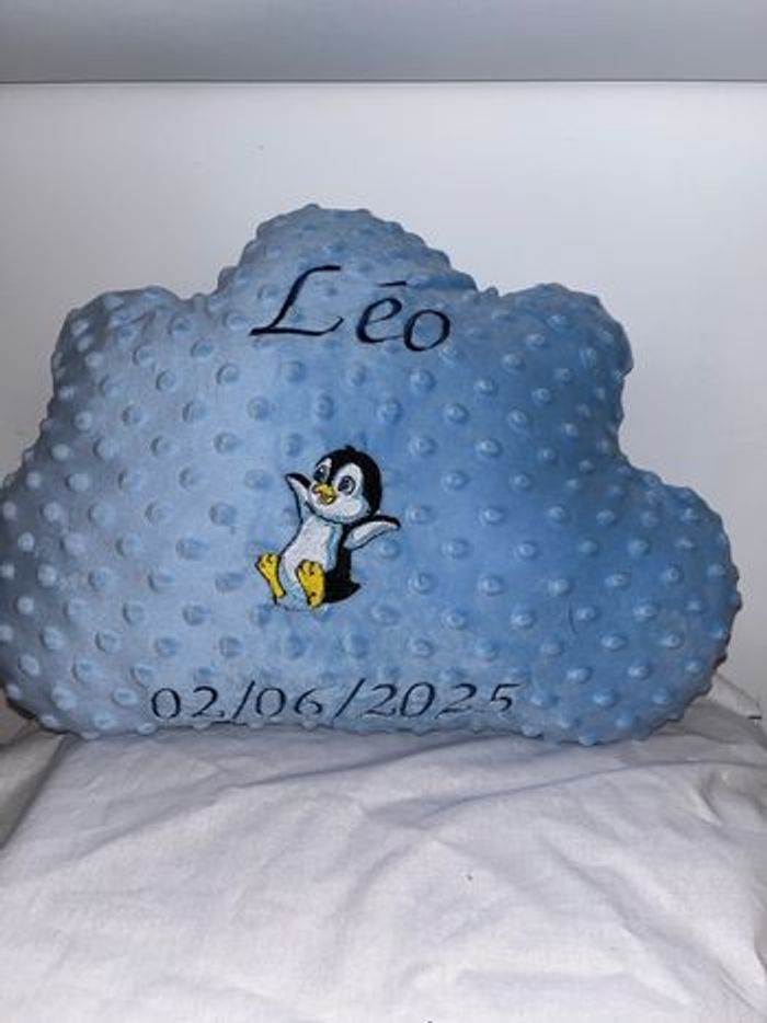 Coussin forme nuage Avec inscription brodé Couleur du tissu au choix Avec ou sans dessin au centre