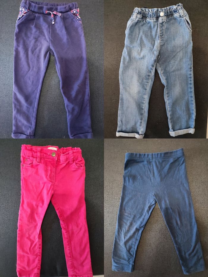 4 Pantalons 36 mois 1 jogging, 1 legging bleu 1 jean rose et 1 jean ample taille grand (don) Divers marques