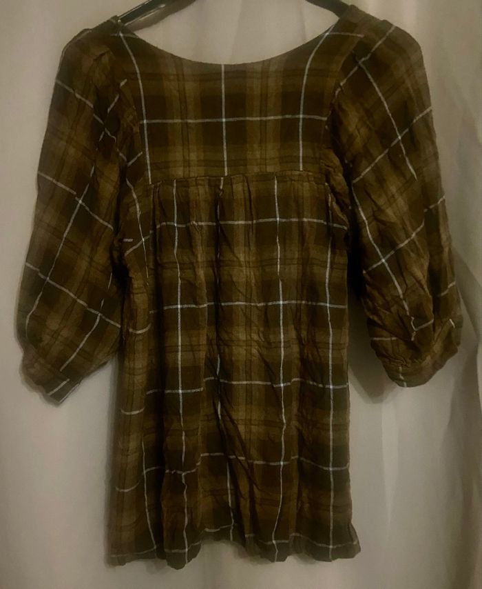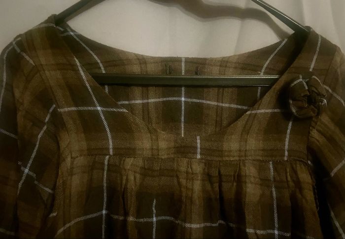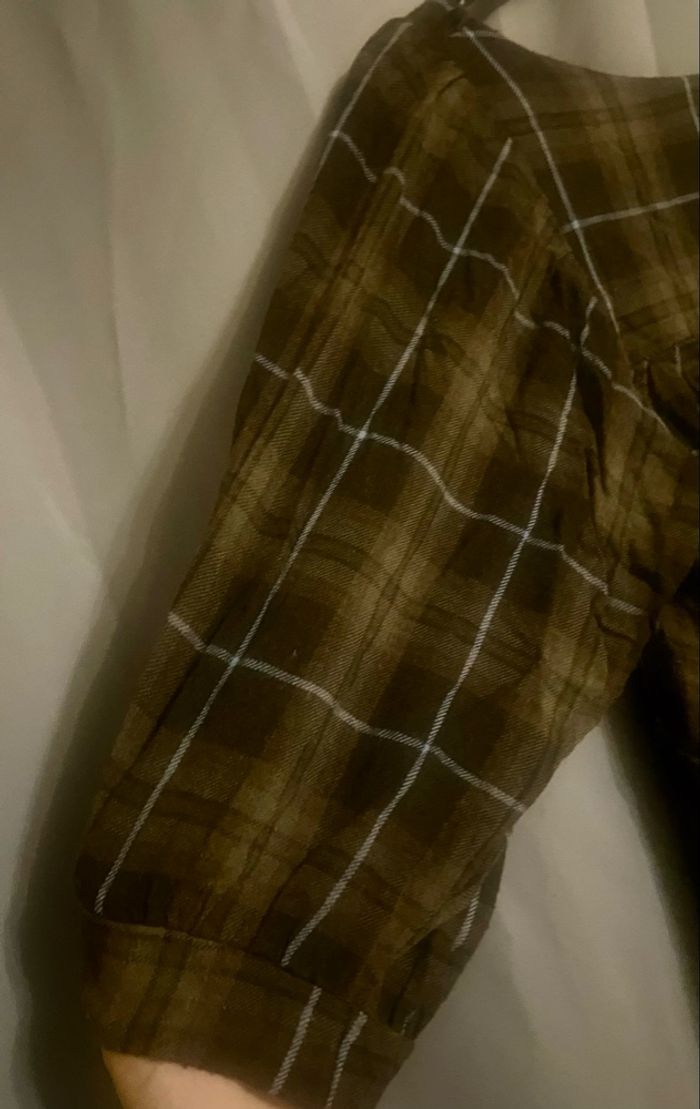 Haut à carreaux marron et bleu turquoise manches 3/4 - photo numéro 9