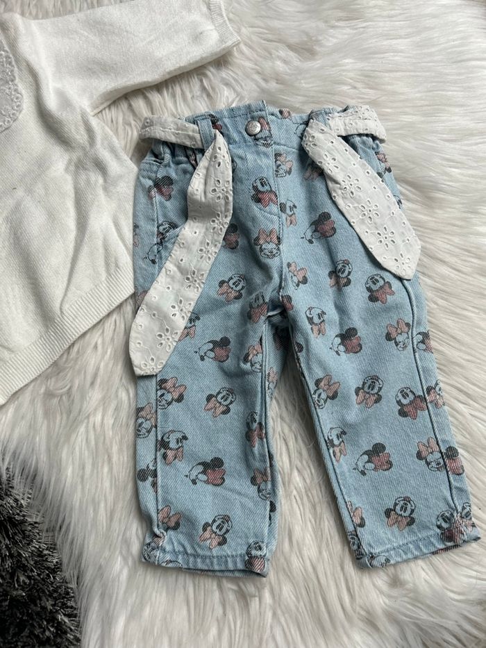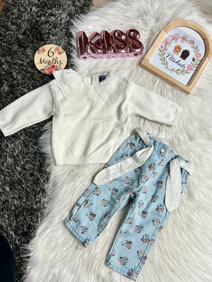 Ensemble Bébé Fille 6M Pull Col Brodé + Jean Minnie ✨ Un très bel ensemble pour bébé fille, idéal pour un look à la fois doux et original ! Parfait pour les occasions spéciales ou juste pour être stylée au quotidien. Cet ensemble 2 pièces comprend : 1. Pull Blanc Cassé Maille Fine • Détail Magnifique : Grand col claudine blanc en broderie anglaise (ajourée). Le col est amovible ou cousu sur le pull, ce qui est très pratique. • Marque : Kiabi (taille 6 mois / 68 cm) • Matière : Maille fine très agréable. 2. Jean Denim Clair Imprimé Minnie Mouse • Style : Motif Minnie et ses nœuds en rose poudré sur l'ensemble du jean. • Confort : Taille élastiquée pour s'adapter facilement à bébé. • Le Plus : Livré avec une ceinture assortie en broderie anglaise qui fait de jolis nœuds. État : Neuf ou Excellent état.