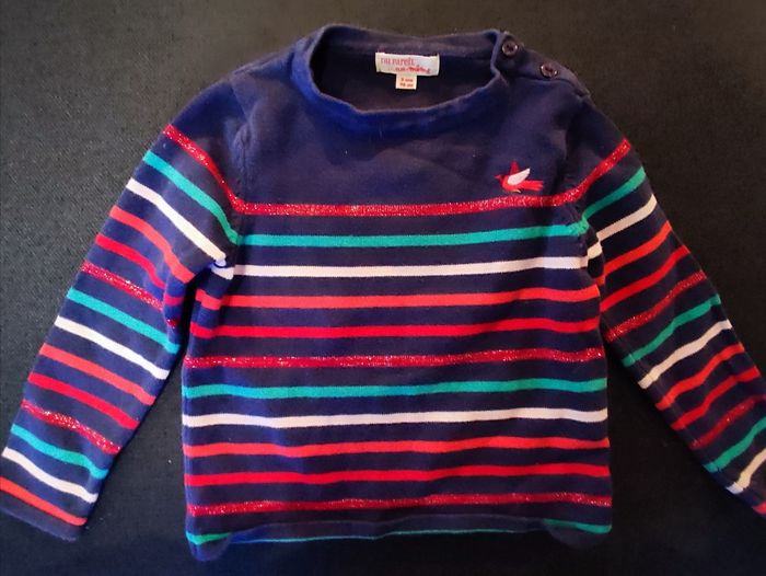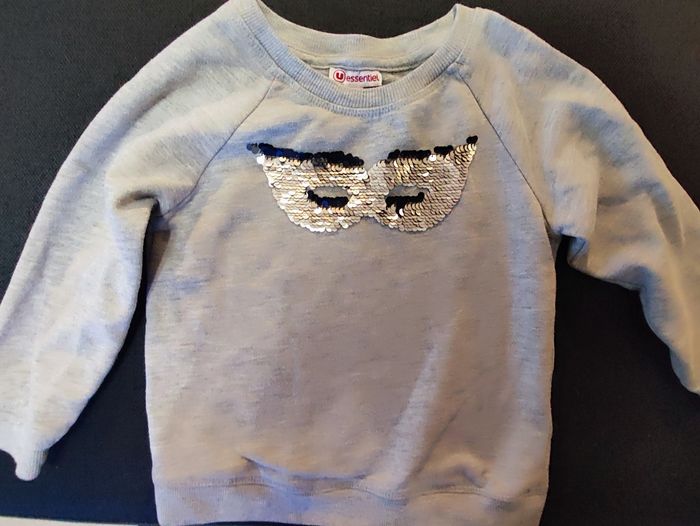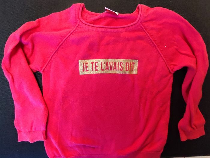 5 pulls et 1 gilet, taille 36 mois 1 pull blanc avec un coeur 1 pull blanc Orchestra 1 pull gris avec masque en sequin Essentiel 1 pull rose "je te l'avais dit" Tape à l'oeil 1 pull rayé Du Pareil au Même Gilet 4 ans mais taille petit Kiabi
