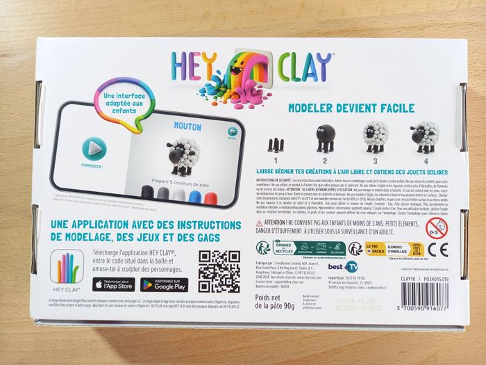 Application avec guide interactif: Scannez le QR code inclus pour accéder à l’application Hey Clay et suivre des tutoriels étape par étape. Les enfants peuvent réaliser des animaux amusants avec cette pâte à modeler intuitive et ludique.