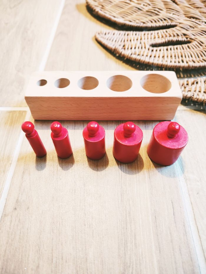 👶Bloc de cylindres /poids en bois rouge - perception dimensionnelle Montessori - photo numéro 1
