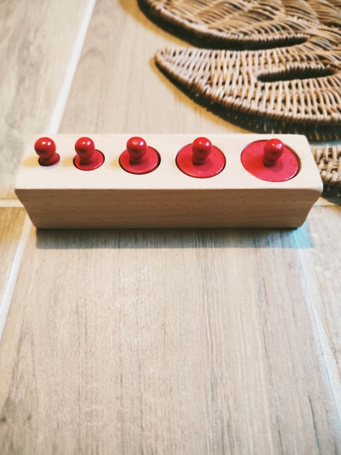 👶Bloc de cylindres /poids en bois rouge - perception dimensionnelle Montessori - photo numéro 2