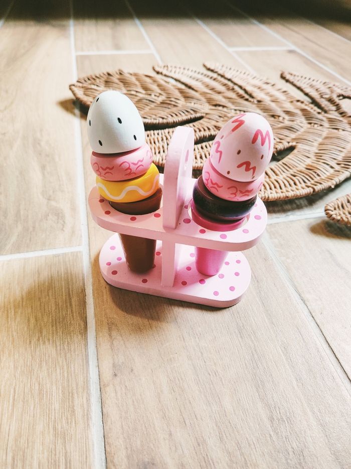 🍦Dinette cornets de glaces à scratch sur socle en bois JB1896 🎀2 cornets de glaces à composer avec les différentes boules à scratch 🎀Quelques petites traces d'usures ❇️N'hésitez pas à créer un lot pour économiser sur les frais de port❇️ Premier âge, Jouet bébé, Jouet d'activité, Jouet ludique, Jouet eveil, Mémorisation, Memoire, aptitude, motricité, jeu Adresse, Montessori, jeu bois, Jouet bois, Jouet vintage, Jeu adresse, jeu apprentissage, dextérité, jeu sensorielle, jeu educatif, activités et Jouet pour bébé, trier empiler, encastrer, jeux et jouets