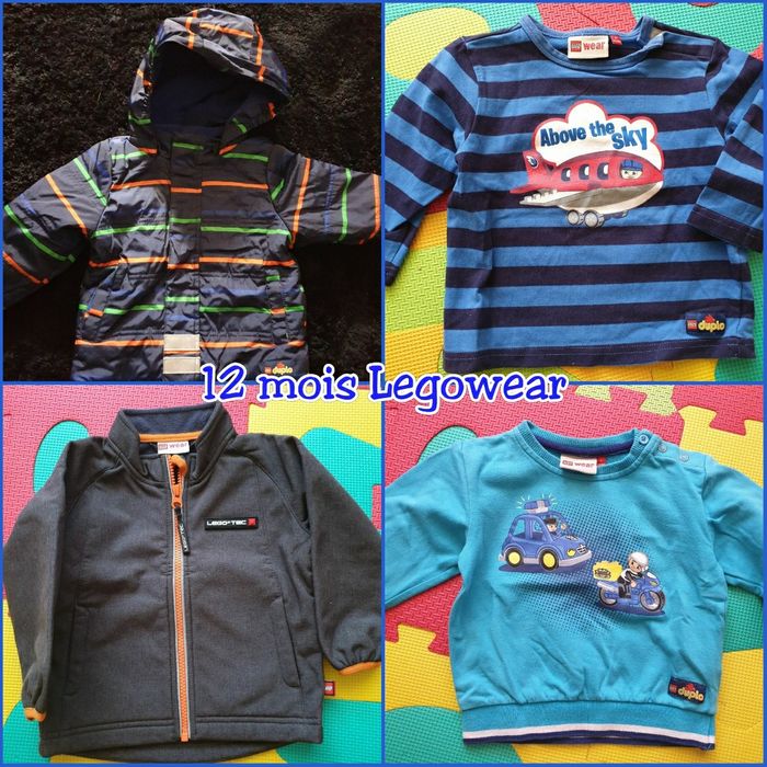 Lot vêtements Legowear 12 mois 4 pieces  1 veste impermeable + 1 blouson + 1 sweat + 1 tshirt