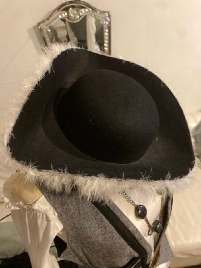 Déguisement pirate assemblage maison taille 38/40 Un chapeau Un cache oeil Un magnifique collier grosses pierres noires marbré, des créoles, une bague ajustable, un bracelet Un ceinture Un crochet Une tunique Un boléro Une jupe
